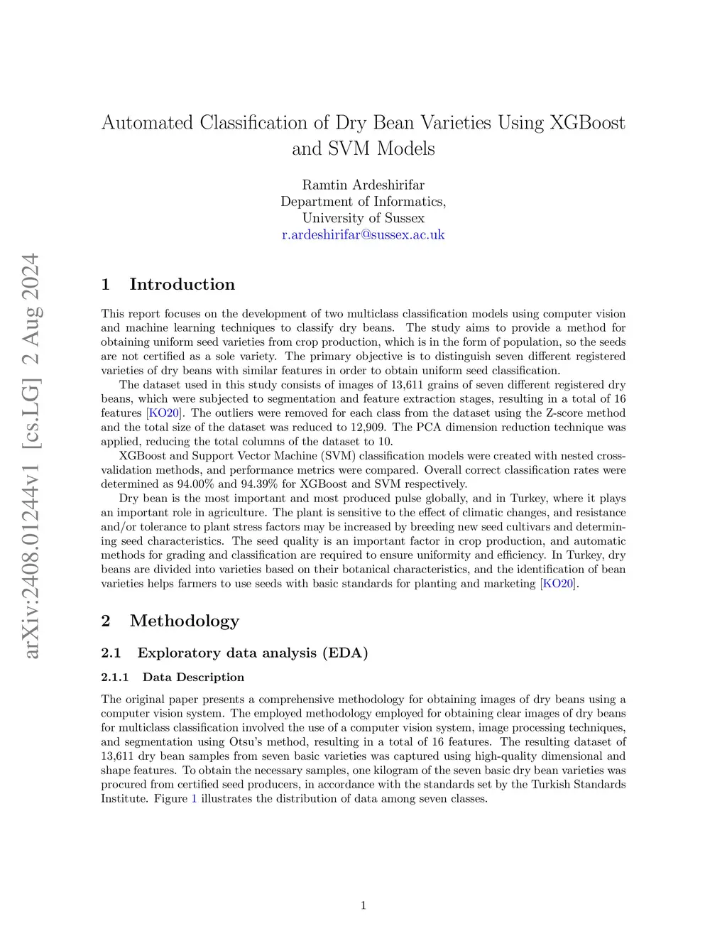Automated Classification of Dry Bean Varieties Using XGBoost and SVM