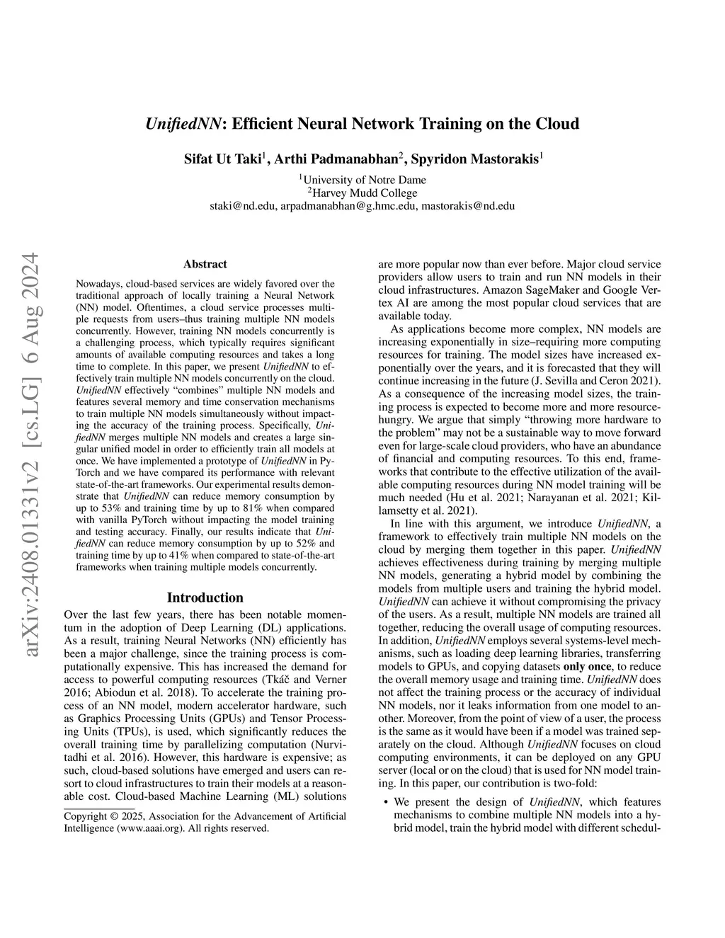 UnifiedNN: Efficient Neural Network Training on the Cloud