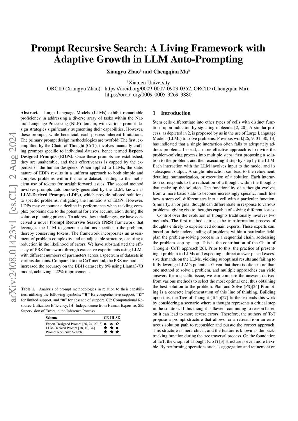 Large Language Models (LLMs) exhibit remarkable proficiency in addressing a diverse array of tasks within the Natural Language Processing (NLP) domain, with various prompt design strategies significantly augmenting their capabilities. However, these prompts, while beneficial, each possess inherent limitations. The primary prompt design methodologies are twofold: The first, exemplified by the Chain of Thought (CoT), involves manually crafting prompts specific to individual datasets, hence termed Expert-Designed Prompts (EDPs). Once these prompts are established, they are unalterable, and their effectiveness is capped by the expertise of the human designers. When applied to LLMs, the static nature of EDPs results in a uniform approach to both simple and complex problems within the same dataset, leading to the inefficient use of tokens for straightforward issues. The second method involves prompts autonomously generated by the LLM, known as LLM-Derived Prompts (LDPs), which provide tailored solutions to specific problems, mitigating the limitations of EDPs. However, LDPs may encounter a decline in performance when tackling complex problems due to the potential for error accumulation during the solution planning process. To address these challenges, we have conceived a novel Prompt Recursive Search (PRS) framework that leverages the LLM to generate solutions specific to the problem, thereby conserving tokens. The framework incorporates an assessment of problem complexity and an adjustable structure, ensuring a reduction in the likelihood of errors. We have substantiated the efficacy of PRS framework through extensive experiments using LLMs with different numbers of parameters across a spectrum of datasets in various domains. Compared to the CoT method, the PRS method has increased the accuracy on the BBH dataset by 8% using Llama3-7B model, achieving a 22% improvement.