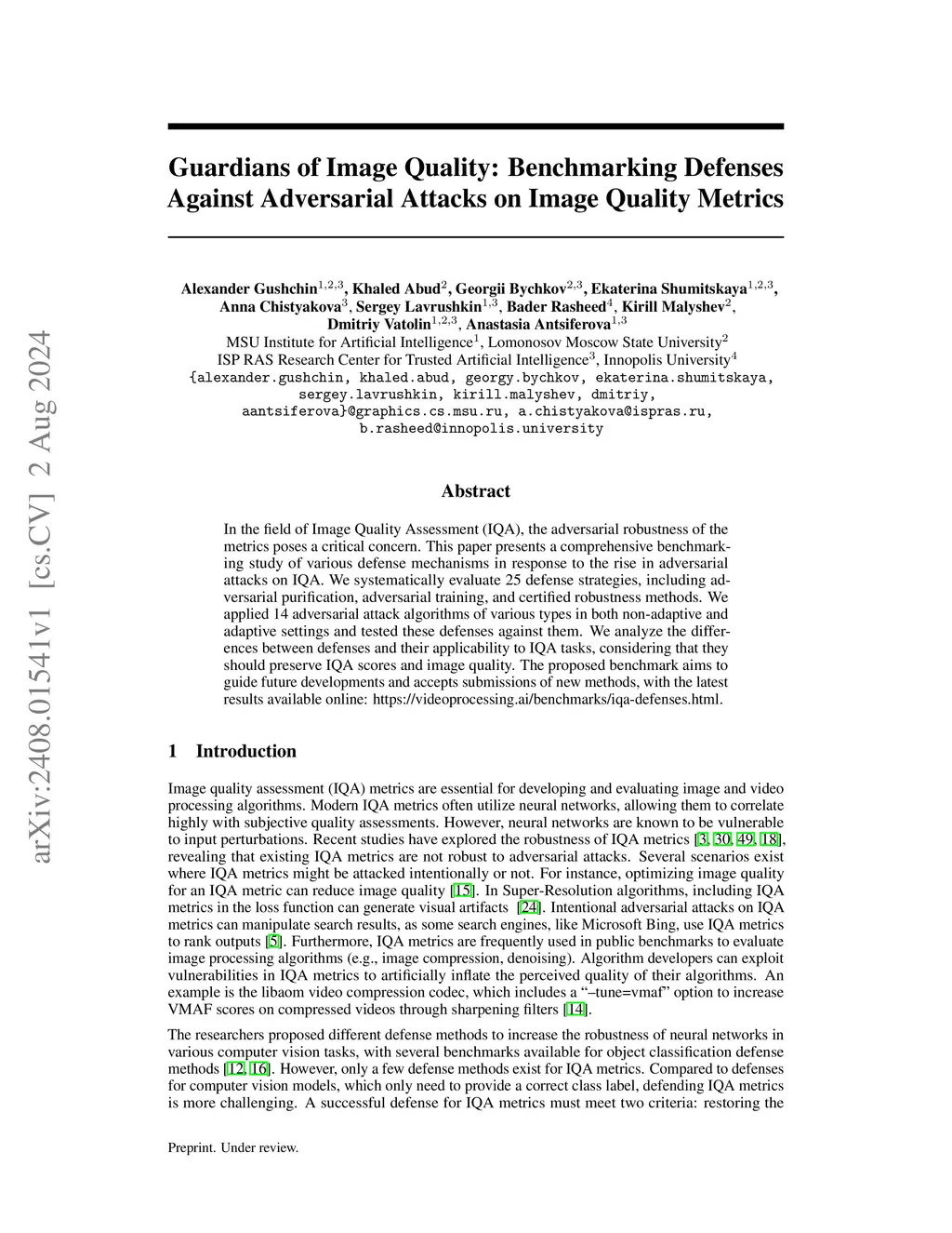 Guardians of Image Quality: Benchmarking Defenses Against Adversarial Attacks on Image Quality Metrics