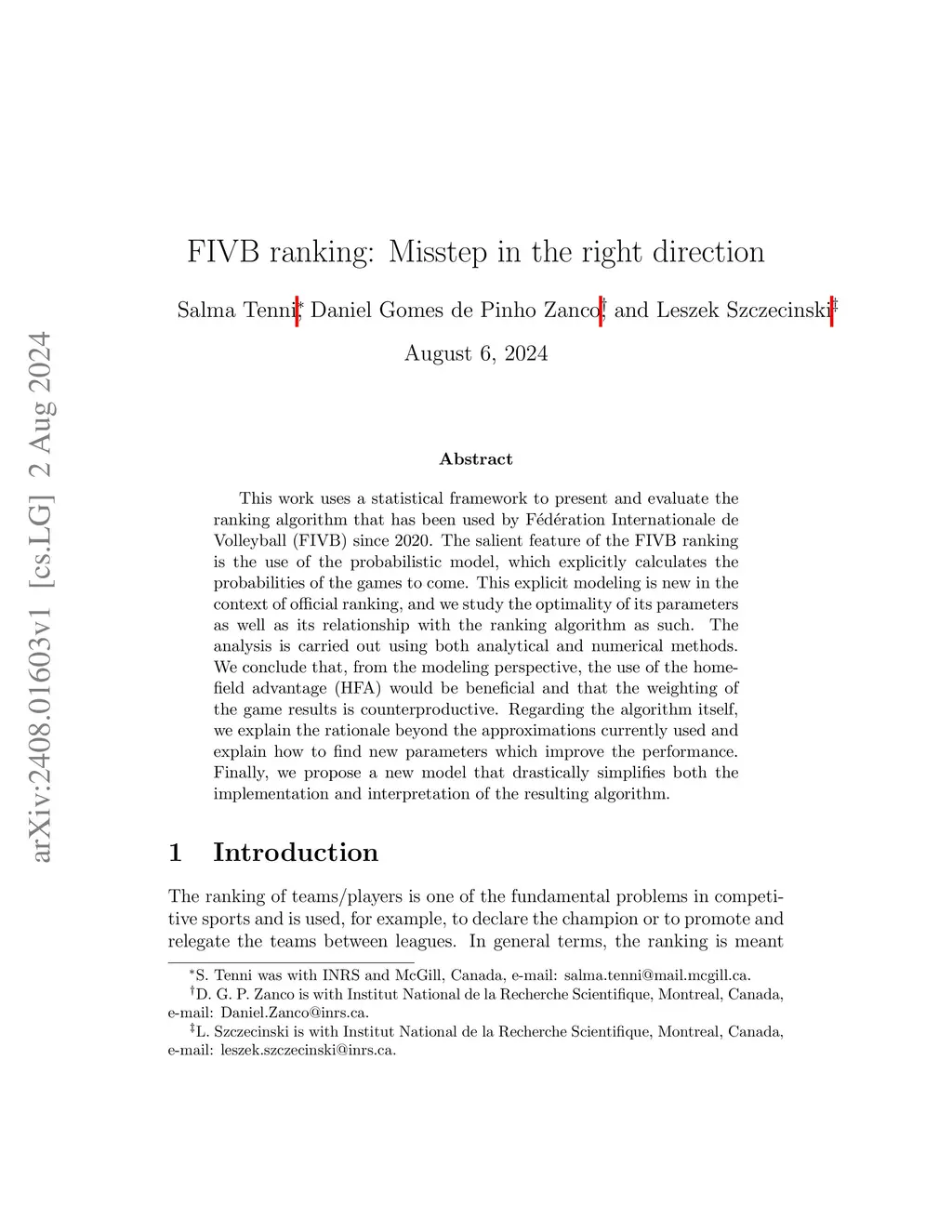 This work presents and evaluates the ranking algorithm that has been used by Federation Internationale de Volleyball (FIVB) since 2020. The prominent feature of the FIVB ranking is the use of the probabilistic model, which explicitly calculates the probabilities of the future matches results using the estimated teams' strengths. Such explicit modeling is new in the context of official sport rankings, especially for multi-level outcomes, and we study the optimality of its parameters using both analytical and numerical methods. We conclude that from the modeling perspective, the current thresholds fit well the data but adding the home-field advantage (HFA) would be beneficial. Regarding the algorithm itself, we explain the rationale behind the approximations currently used and show a simple method to find new parameters (numerical score) which improve the performance. We also show that the weighting of the match results is counterproductive.