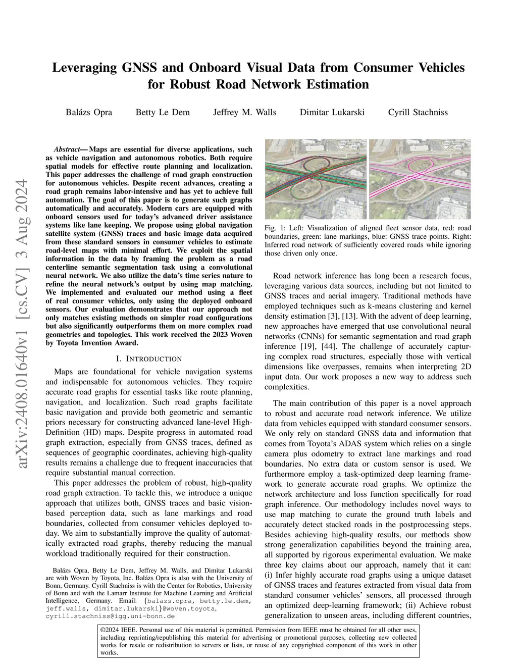Maps are essential for diverse applications, such as vehicle navigation and autonomous robotics. Both require spatial models for effective route planning and localization. This paper addresses the challenge of road graph construction for autonomous vehicles. Despite recent advances, creating a road graph remains labor-intensive and has yet to achieve full automation. The goal of this paper is to generate such graphs automatically and accurately. Modern cars are equipped with onboard sensors used for today's advanced driver assistance systems like lane keeping. We propose using global navigation satellite system (GNSS) traces and basic image data acquired from these standard sensors in consumer vehicles to estimate road-level maps with minimal effort. We exploit the spatial information in the data by framing the problem as a road centerline semantic segmentation task using a convolutional neural network. We also utilize the data's time series nature to refine the neural network's output by using map matching. We implemented and evaluated our method using a fleet of real consumer vehicles, only using the deployed onboard sensors. Our evaluation demonstrates that our approach not only matches existing methods on simpler road configurations but also significantly outperforms them on more complex road geometries and topologies. This work received the 2023 Woven by Toyota Invention Award.