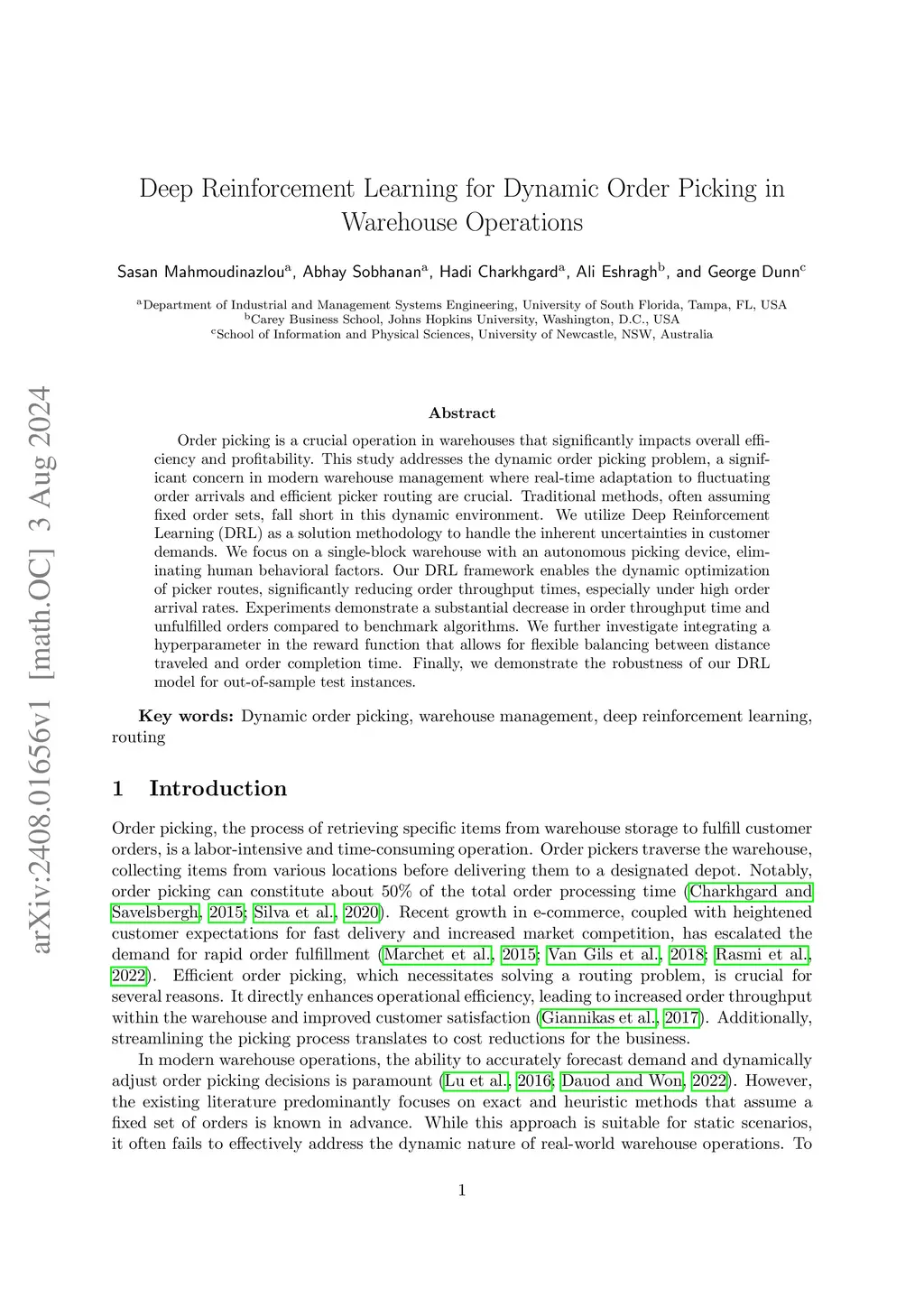 Deep Reinforcement Learning for Dynamic Order Picking in Warehouse Operations