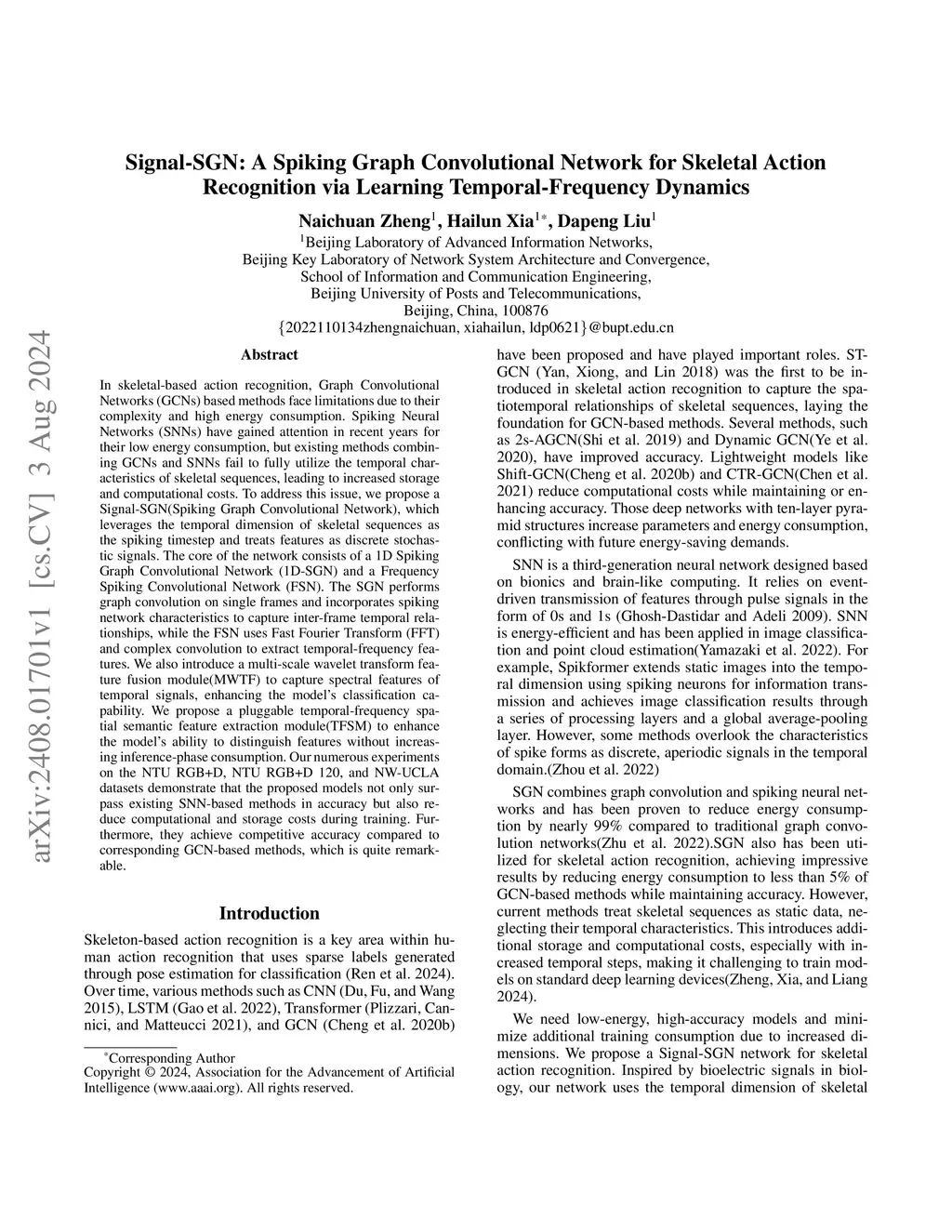 Signal-SGN: A Spiking Graph Convolutional Network for Skeletal Action Recognition via Learning Temporal-Frequency Dynamics