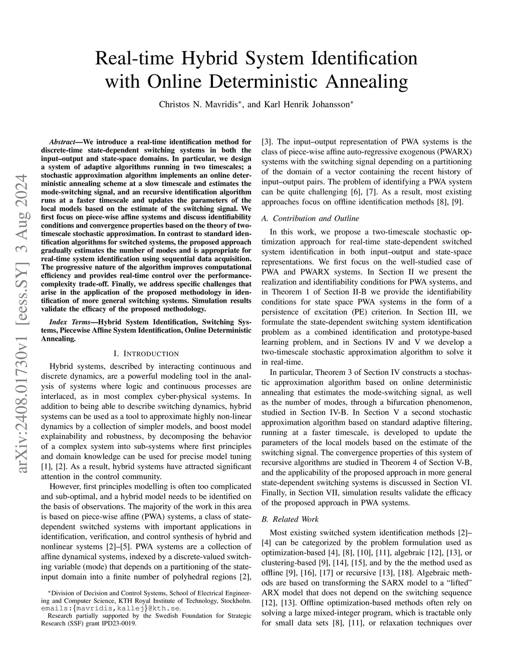 Real-time Hybrid System Identification with Online Deterministic Annealing