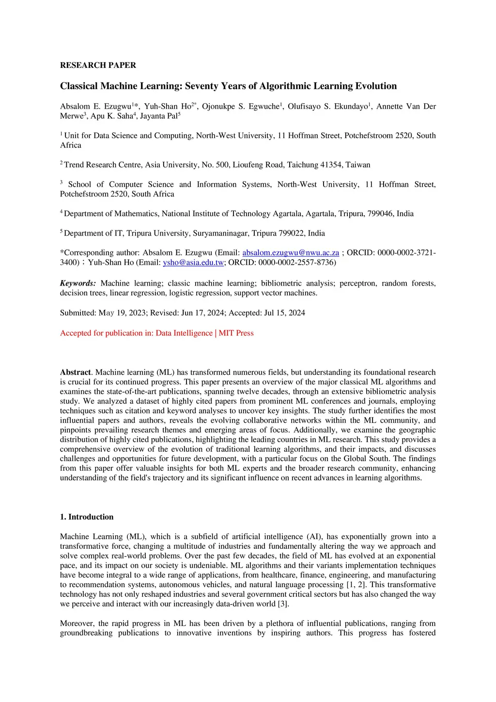 Machine learning (ML) has transformed numerous fields, but understanding its foundational research is crucial for its continued progress. This paper presents an overview of the significant classical ML algorithms and examines the state-of-the-art publications spanning twelve decades through an extensive bibliometric analysis study. We analyzed a dataset of highly cited papers from prominent ML conferences and journals, employing citation and keyword analyses to uncover critical insights. The study further identifies the most influential papers and authors, reveals the evolving collaborative networks within the ML community, and pinpoints prevailing research themes and emerging focus areas. Additionally, we examine the geographic distribution of highly cited publications, highlighting the leading countries in ML research. This study provides a comprehensive overview of the evolution of traditional learning algorithms and their impacts. It discusses challenges and opportunities for future development, focusing on the Global South. The findings from this paper offer valuable insights for both ML experts and the broader research community, enhancing understanding of the field's trajectory and its significant influence on recent advances in learning algorithms.