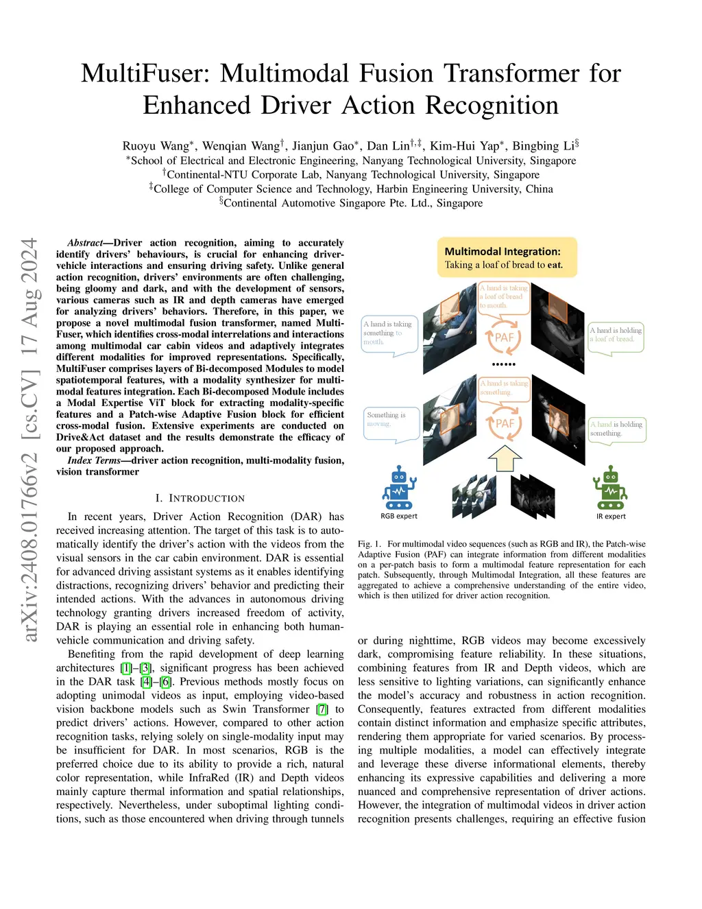 MultiFuser: Multimodal Fusion Transformer for Enhanced Driver Action