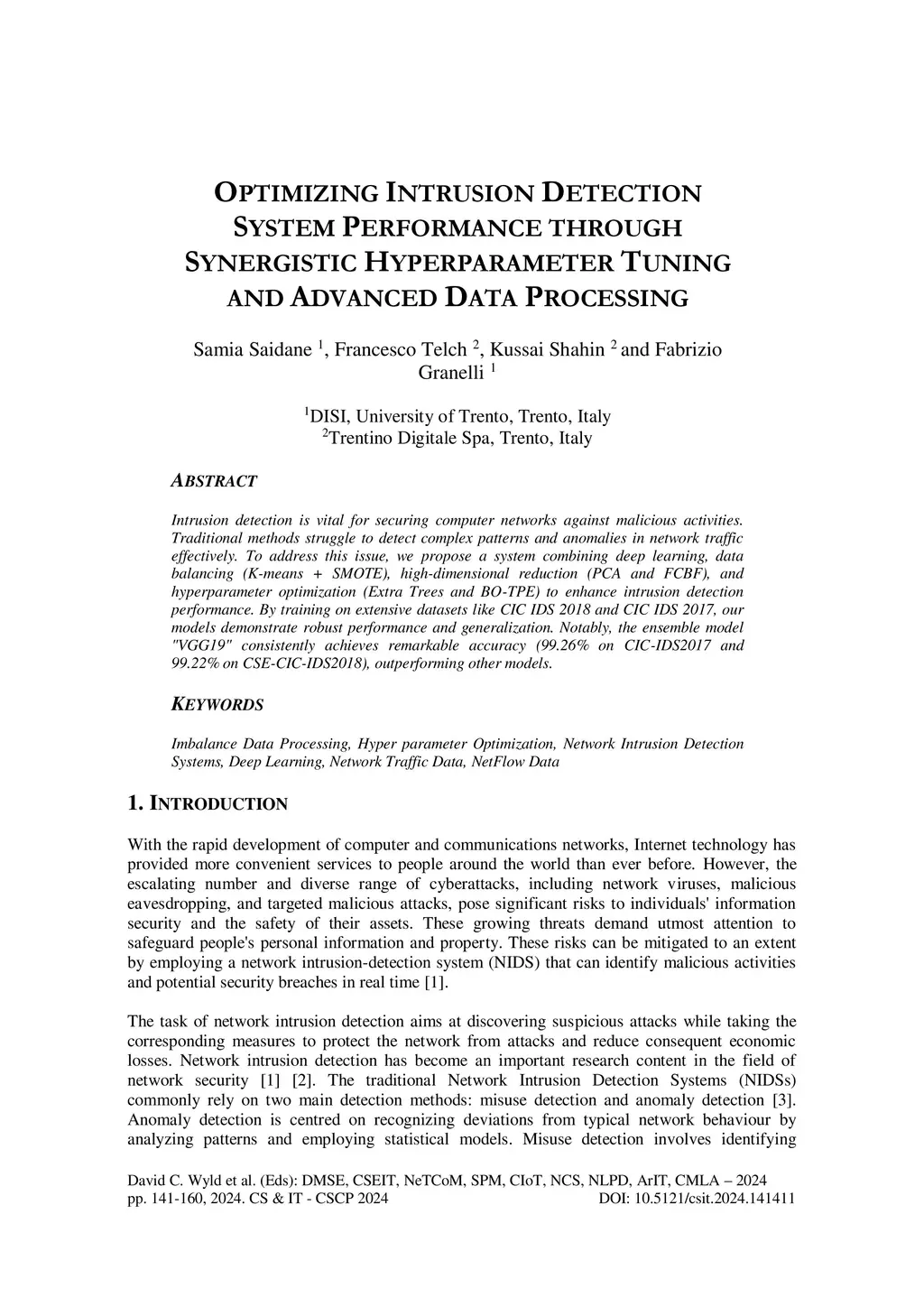 Intrusion detection is vital for securing computer networks against malicious activities. Traditional methods struggle to detect complex patterns and anomalies in network traffic effectively. To address this issue, we propose a system combining deep learning, data balancing (K-means + SMOTE), high-dimensional reduction (PCA and FCBF), and hyperparameter optimization (Extra Trees and BO-TPE) to enhance intrusion detection performance. By training on extensive datasets like CIC IDS 2018 and CIC IDS 2017, our models demonstrate robust performance and generalization. Notably, the ensemble model "VGG19" consistently achieves remarkable accuracy (99.26% on CIC-IDS2017 and 99.22% on CSE-CIC-IDS2018), outperforming other models.