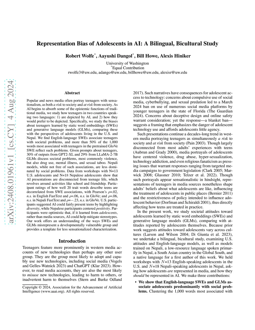 Representation Bias of Adolescents in AI: A Bilingual, Bicultural Study
