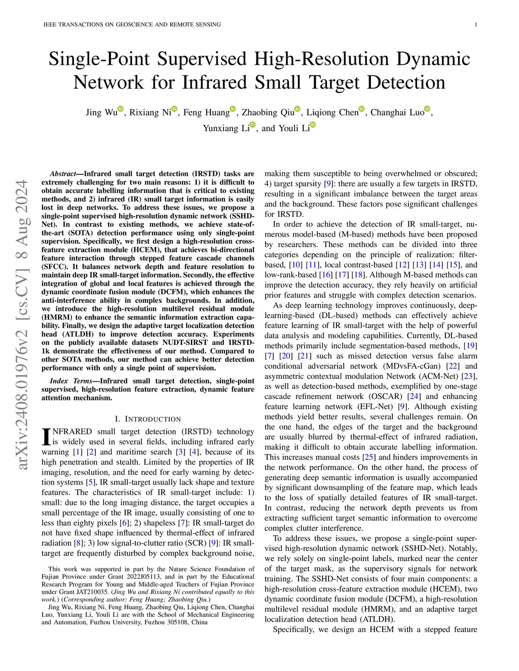 Single-Point Supervised High-Resolution Dynamic Network for Infrared