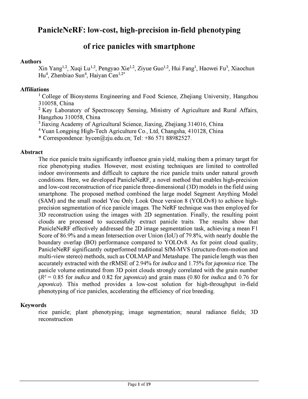 PanicleNeRF: low-cost, high-precision in-field phenotypingof rice