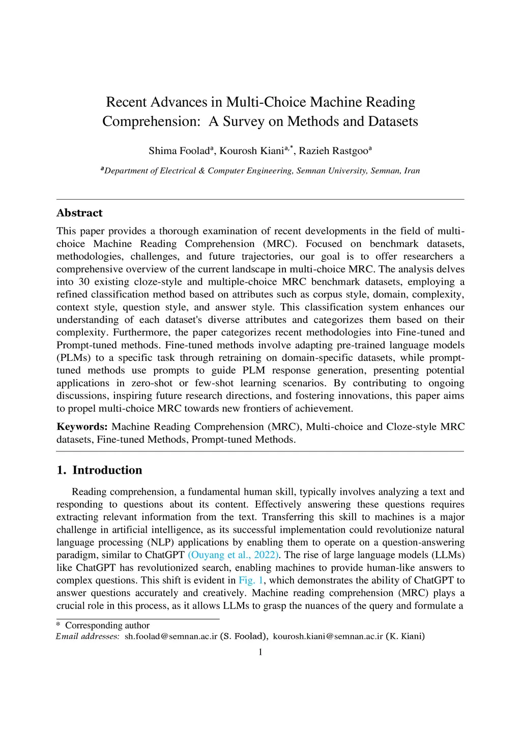 This paper provides a thorough examination of recent developments in the field of multi-choice Machine Reading Comprehension (MRC). Focused on benchmark datasets, methodologies, challenges, and future trajectories, our goal is to offer researchers a comprehensive overview of the current landscape in multi-choice MRC. The analysis delves into 30 existing cloze-style and multiple-choice MRC benchmark datasets, employing a refined classification method based on attributes such as corpus style, domain, complexity, context style, question style, and answer style. This classification system enhances our understanding of each dataset's diverse attributes and categorizes them based on their complexity. Furthermore, the paper categorizes recent methodologies into Fine-tuned and Prompt-tuned methods. Fine-tuned methods involve adapting pre-trained language models (PLMs) to a specific task through retraining on domain-specific datasets, while prompt-tuned methods use prompts to guide PLM response generation, presenting potential applications in zero-shot or few-shot learning scenarios. By contributing to ongoing discussions, inspiring future research directions, and fostering innovations, this paper aims to propel multi-choice MRC towards new frontiers of achievement.