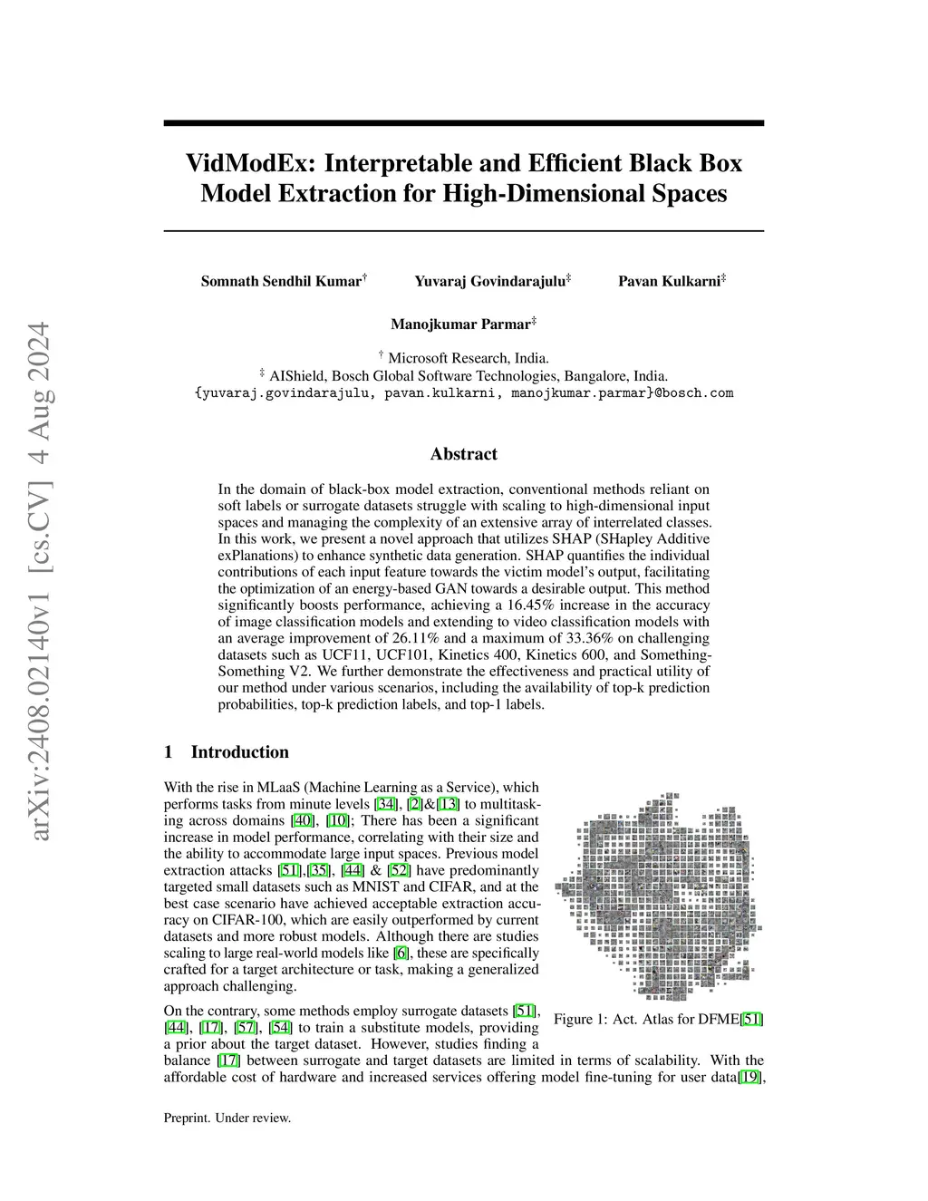 In the domain of black-box model extraction, conventional methods reliant on soft labels or surrogate datasets struggle with scaling to high-dimensional input spaces and managing the complexity of an extensive array of interrelated classes. In this work, we present a novel approach that utilizes SHAP (SHapley Additive exPlanations) to enhance synthetic data generation. SHAP quantifies the individual contributions of each input feature towards the victim model's output, facilitating the optimization of an energy-based GAN towards a desirable output. This method significantly boosts performance, achieving a 16.45% increase in the accuracy of image classification models and extending to video classification models with an average improvement of 26.11% and a maximum of 33.36% on challenging datasets such as UCF11, UCF101, Kinetics 400, Kinetics 600, and Something-Something V2. We further demonstrate the effectiveness and practical utility of our method under various scenarios, including the availability of top-k prediction probabilities, top-k prediction labels, and top-1 labels.