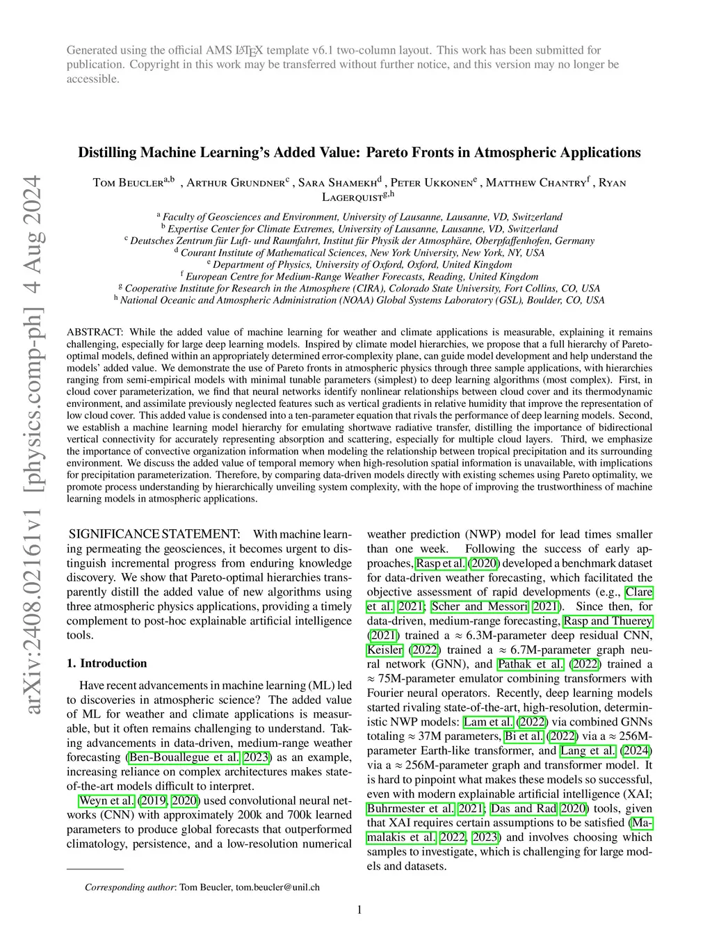 Distilling Machine Learning's Added Value: Pareto Fronts in Atmospheric Applications