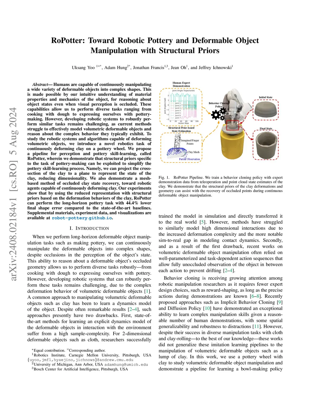 RoPotter: Toward Robotic Pottery and Deformable Object Manipulation with