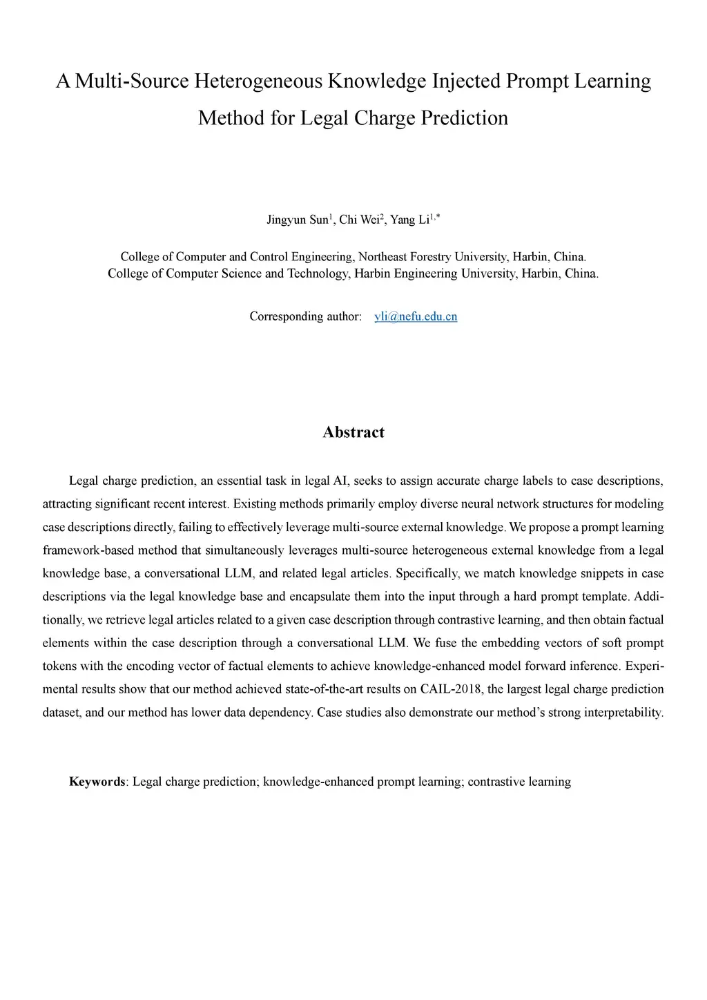 for Legal Charge Prediction