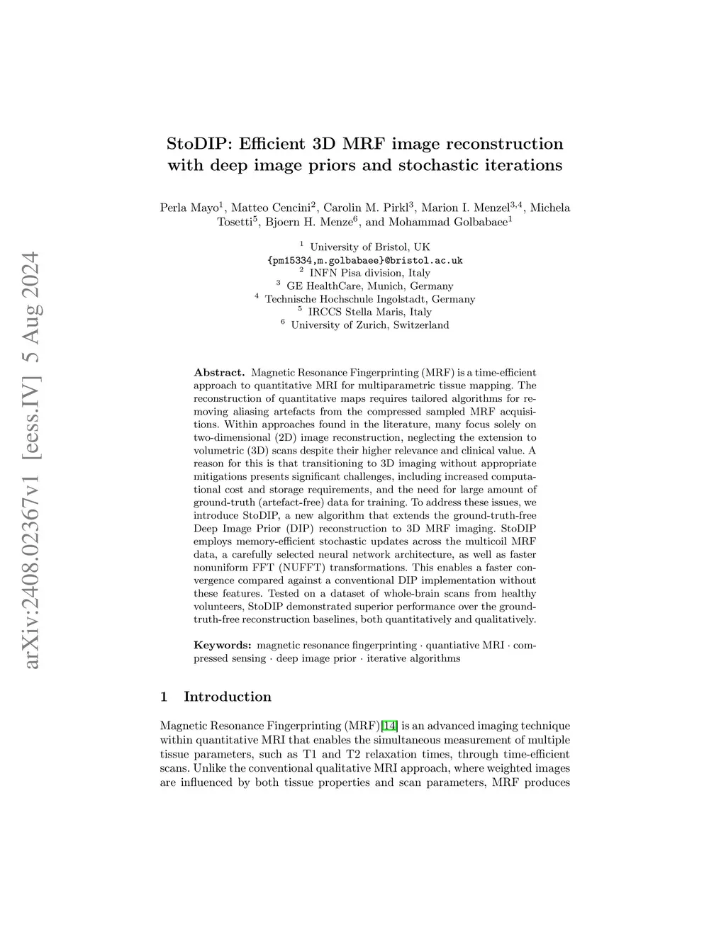 StoDIP: Efficient 3D MRF image reconstruction with deep image priors and