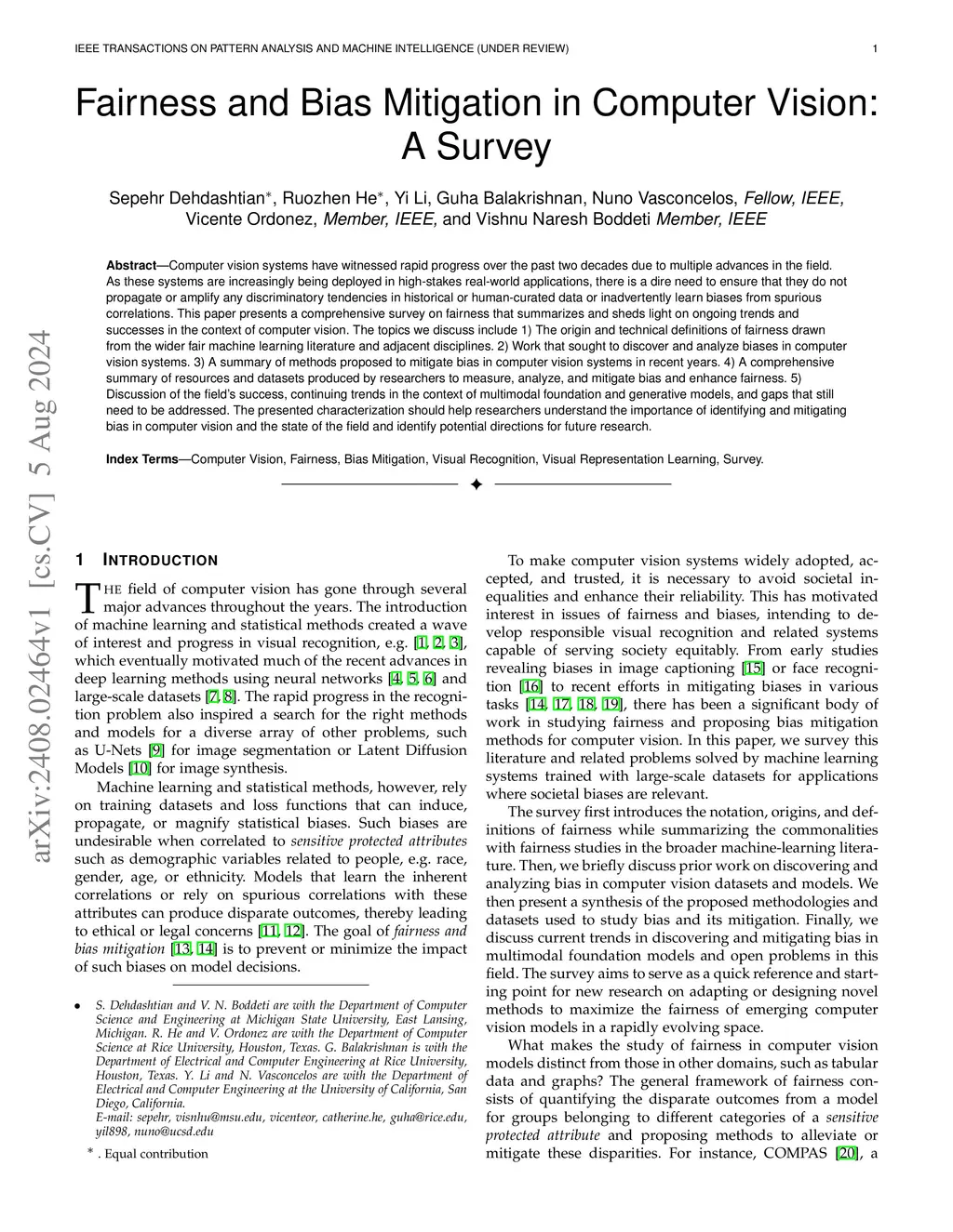 Fairness and Bias Mitigation in Computer Vision: A Survey