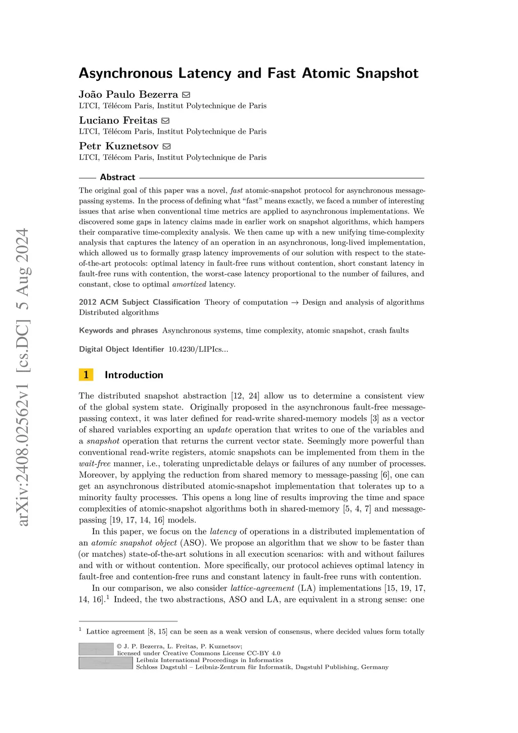 The original goal of this paper was a novel, fast atomic-snapshot protocol for asynchronous message-passing systems. In the process of defining what fast means exactly, we faced a number of interesting issues that arise when conventional time metrics are applied to asynchronous implementations. We discovered some gaps in latency claims made in earlier work on snapshot algorithms, which hampers their comparative time-complexity analysis. We then came up with a new unifying time-complexity analysis that captures the latency of an operation in an asynchronous, long-lived implementation, which allowed us to formally grasp latency improvements of our solution with respect to the state-of-the-art protocols: optimal latency in fault-free runs without contention, short constant latency in fault-free runs with contention, the worst-case latency proportional to the number of failures, and constant, close to optimal amortized latency.