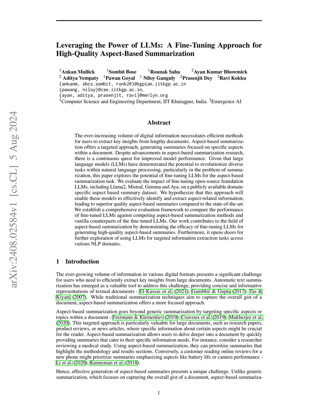 Aspect-Based Summarization