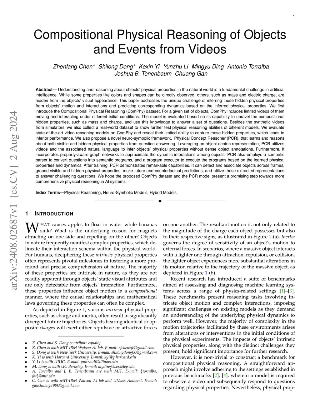 Understanding and reasoning about objects' physical properties in the natural world is a fundamental challenge in artificial intelligence. While some properties like colors and shapes can be directly observed, others, such as mass and electric charge, are hidden from the objects' visual appearance. This paper addresses the unique challenge of inferring these hidden physical properties from objects' motion and interactions and predicting corresponding dynamics based on the inferred physical properties. We first introduce the Compositional Physical Reasoning (ComPhy) dataset. For a given set of objects, ComPhy includes limited videos of them moving and interacting under different initial conditions. The model is evaluated based on its capability to unravel the compositional hidden properties, such as mass and charge, and use this knowledge to answer a set of questions. Besides the synthetic videos from simulators, we also collect a real-world dataset to show further test physical reasoning abilities of different models. We evaluate state-of-the-art video reasoning models on ComPhy and reveal their limited ability to capture these hidden properties, which leads to inferior performance. We also propose a novel neuro-symbolic framework, Physical Concept Reasoner (PCR), that learns and reasons about both visible and hidden physical properties from question answering. After training, PCR demonstrates remarkable capabilities. It can detect and associate objects across frames, ground visible and hidden physical properties, make future and counterfactual predictions, and utilize these extracted representations to answer challenging questions.