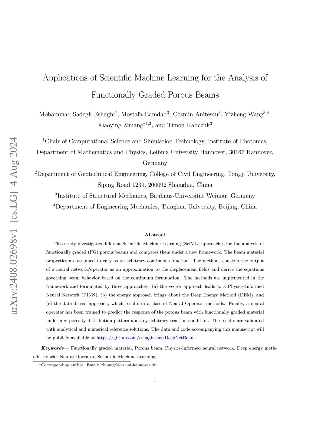 DeepNetBeam: A Framework for the Analysis of Functionally Graded Porous