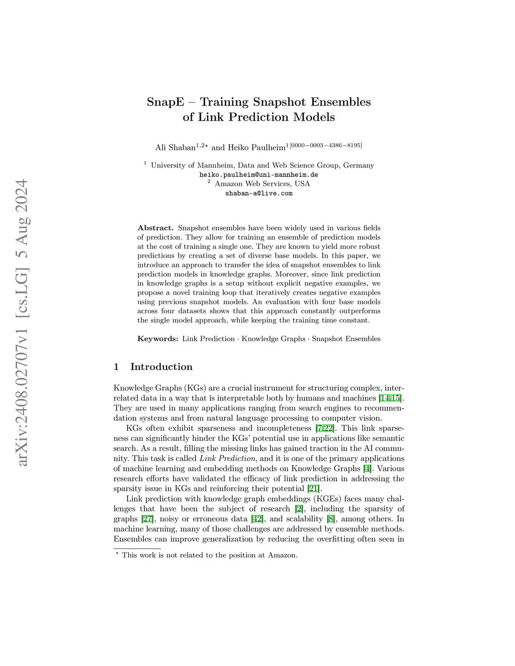 SnapE -- Training Snapshot Ensembles of Link Prediction Models