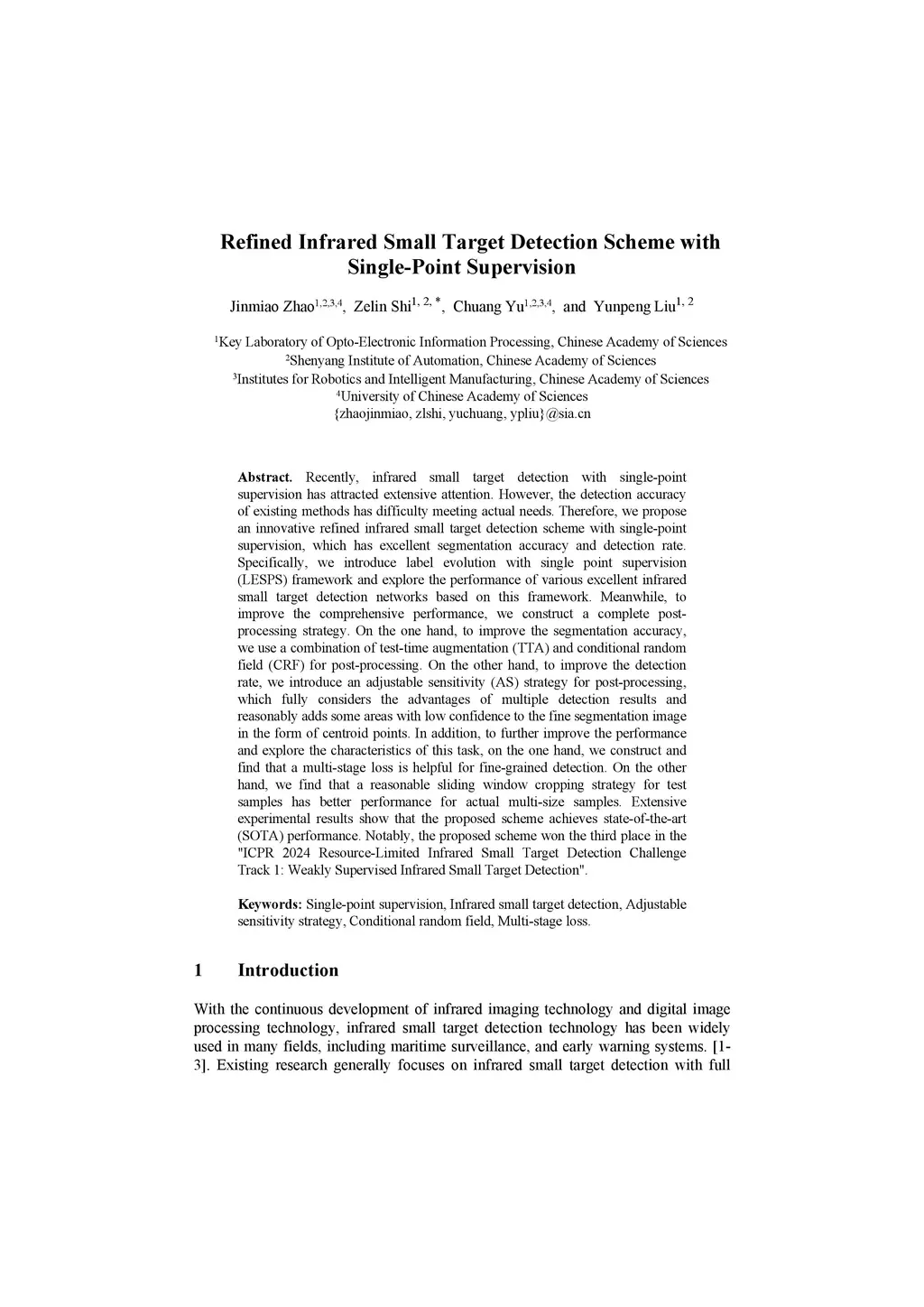 Refined Infrared Small Target Detection Scheme with Single-Point