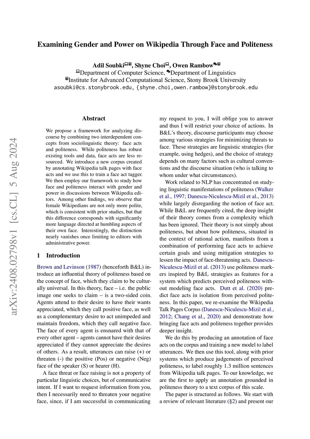 Examining Gender and Power on Wikipedia Through Face and Politeness