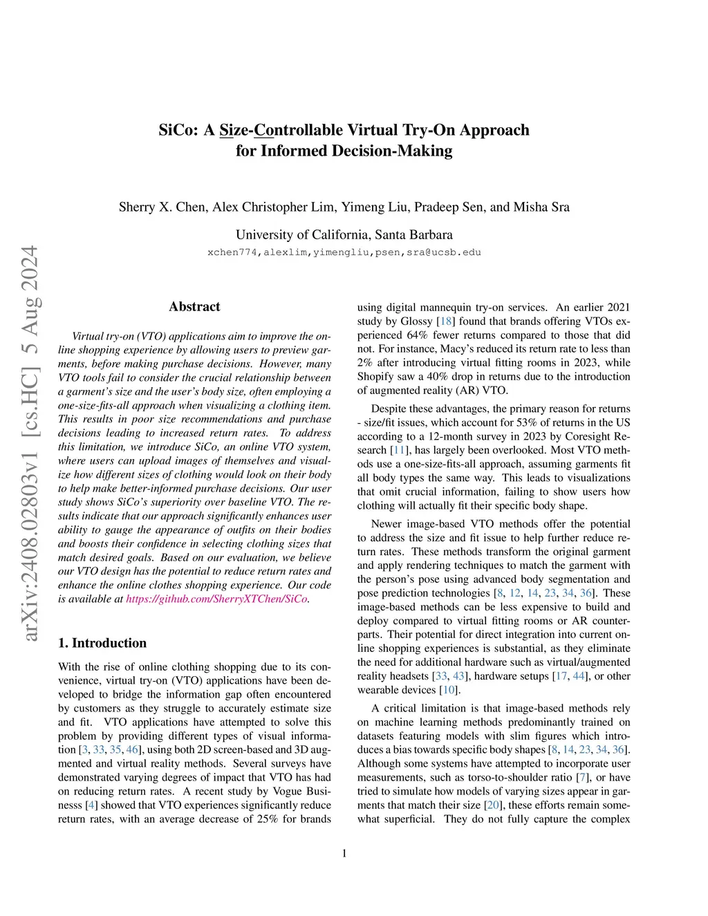 Virtual try-on (VTO) applications aim to replicate the in-store shopping experience and enhance online shopping by enabling users to interact with garments. However, many existing tools adopt a one-size-fits-all approach when visualizing clothing items. This approach limits user interaction with garments, particularly regarding size and fit adjustments, and fails to provide direct insights for size recommendations. As a result, these limitations contribute to high return rates in online shopping. To address this, we introduce SiCo, a new online VTO system that allows users to upload images of themselves and interact with garments by visualizing how different sizes would fit their bodies. Our user study demonstrates that our approach significantly improves users' ability to assess how outfits will appear on their bodies and increases their confidence in selecting clothing sizes that align with their preferences. Based on our evaluation, we believe that SiCo has the potential to reduce return rates and transform the online clothing shopping experience.