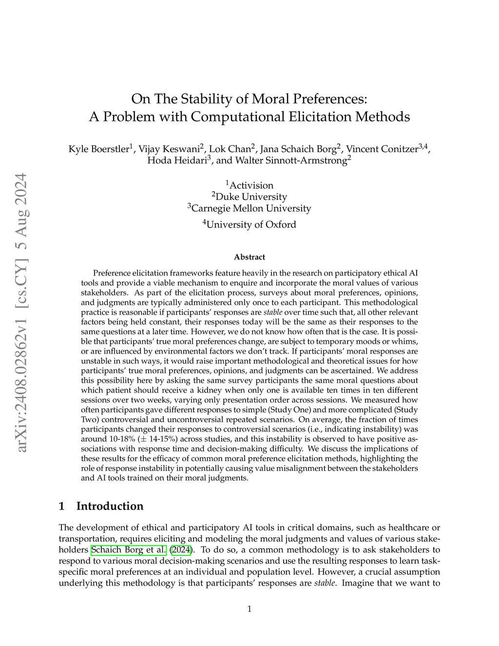 Preference elicitation frameworks feature heavily in the research on participatory ethical AI tools and provide a viable mechanism to enquire and incorporate the moral values of various stakeholders. As part of the elicitation process, surveys about moral preferences, opinions, and judgments are typically administered only once to each participant. This methodological practice is reasonable if participants' responses are stable over time such that, all other relevant factors being held constant, their responses today will be the same as their responses to the same questions at a later time. However, we do not know how often that is the case. It is possible that participants' true moral preferences change, are subject to temporary moods or whims, or are influenced by environmental factors we don't track. If participants' moral responses are unstable in such ways, it would raise important methodological and theoretical issues for how participants' true moral preferences, opinions, and judgments can be ascertained. We address this possibility here by asking the same survey participants the same moral questions about which patient should receive a kidney when only one is available ten times in ten different sessions over two weeks, varying only presentation order across sessions. We measured how often participants gave different responses to simple (Study One) and more complicated (Study Two) repeated scenarios. On average, the fraction of times participants changed their responses to controversial scenarios was around 10-18% across studies, and this instability is observed to have positive associations with response time and decision-making difficulty. We discuss the implications of these results for the efficacy of moral preference elicitation, highlighting the role of response instability in causing value misalignment between stakeholders and AI tools trained on their moral judgments.