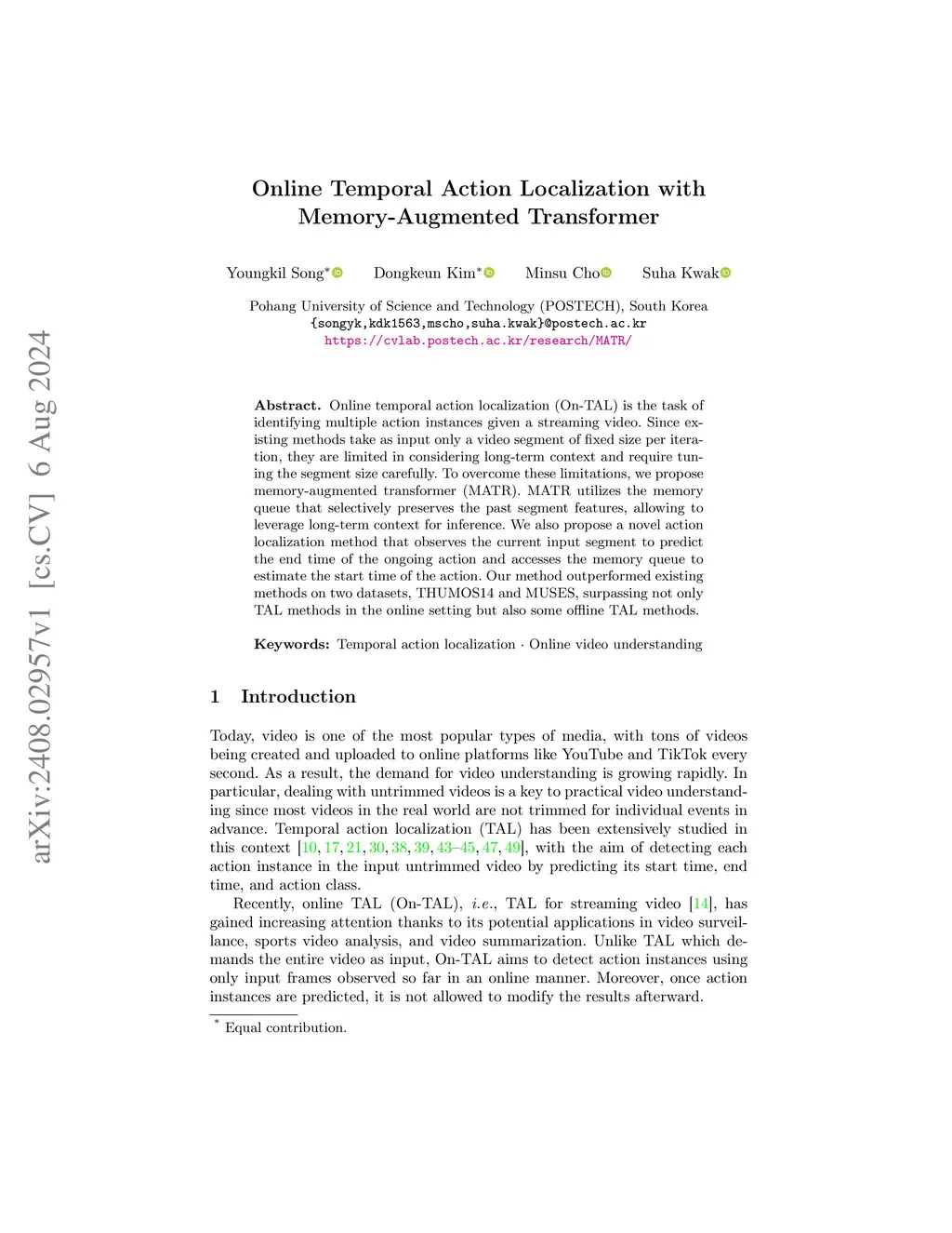 Online Temporal Action Localization with Memory-Augmented Transformer