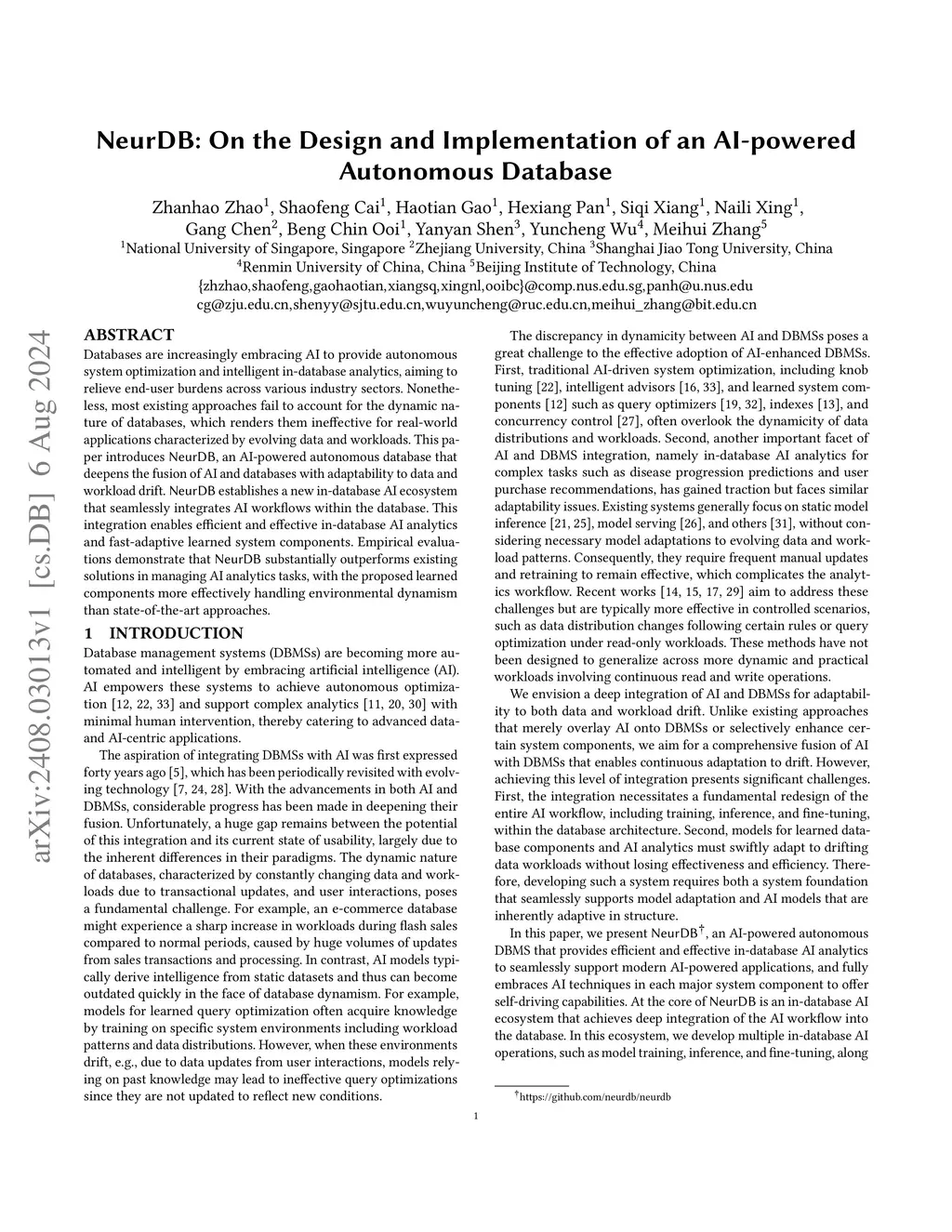 NeurDB: On the Design and Implementation of an AI-powered Autonomous Database