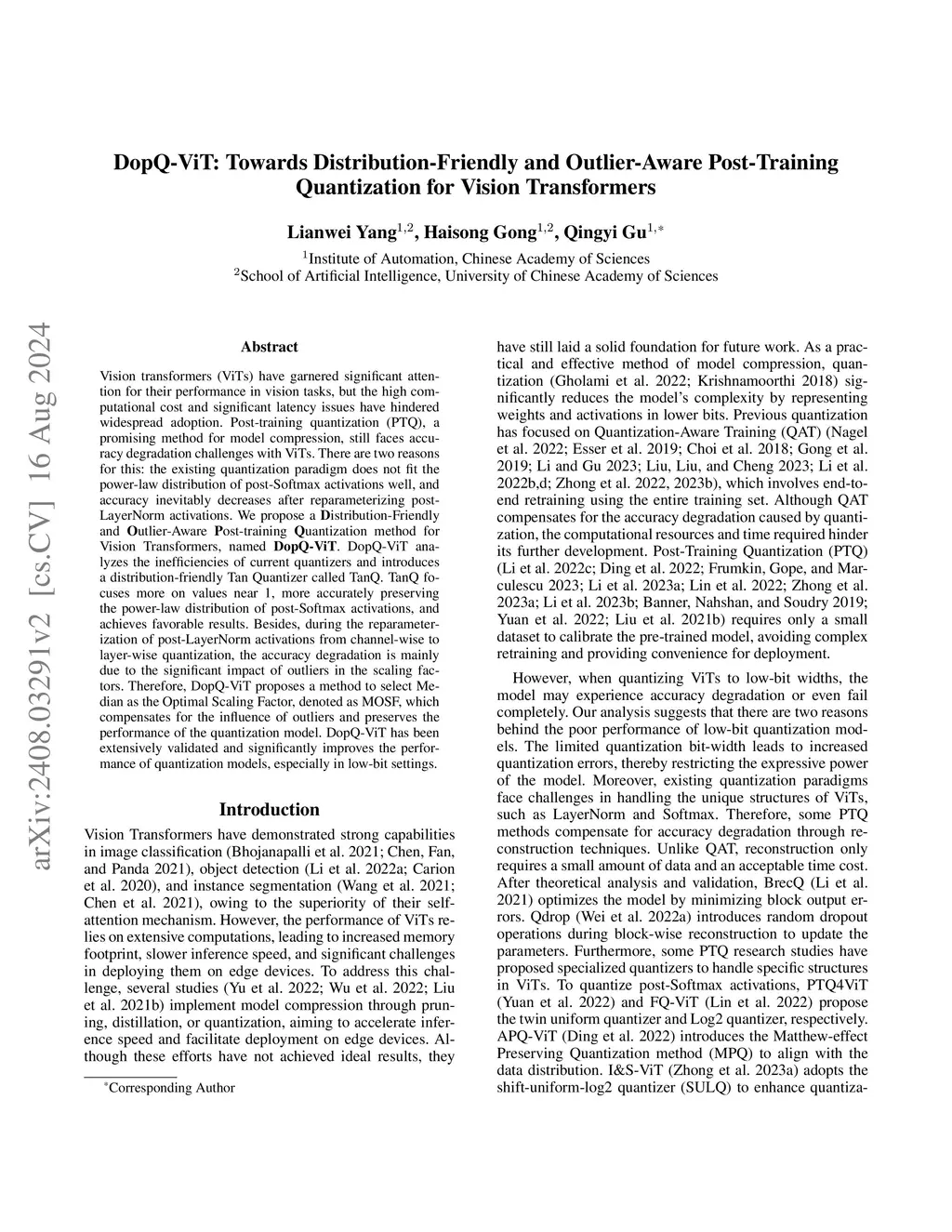 DopQ-ViT: Towards Distribution-Friendly and Outlier-Aware Post-Training Quantization for Vision Transformers