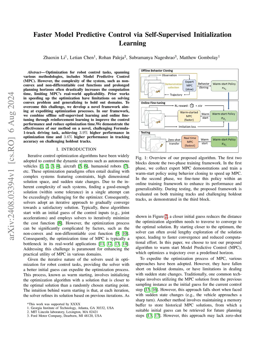 Model Predictive Control (MPC) is widely used in robot control by optimizing a sequence of control outputs over a finite-horizon. Computational approaches for MPC include deterministic methods (e.g., iLQR and COBYLA), as well as sampling-based methods (e.g., MPPI and CEM). However, complex system dynamics and non-convex or non-differentiable cost terms often lead to prohibitive optimization times that limit real-world deployment. Prior efforts to accelerate MPC have limitations on: (i) reusing previous solutions fails under sharp state changes and (ii) pure imitation learning does not target compute efficiency directly and suffers from suboptimality in the training data. To address these, We propose a warm-start framework that learns a policy to generate high-quality initial guesses for MPC solver. The policy is first trained via behavior cloning from expert MPC rollouts and then fine-tuned online with reinforcement learning to directly minimize MPC optimization time. We empirically validate that our approach improves both deterministic and sampling-based MPC methods, achieving up to 21.6% faster optimization and 34.1% more tracking accuracy for deterministic MPC in Formula 1 track path-tracking domain, and improving safety by 100%, path efficiency by 12.8%, and steering smoothness by 7.2% for sampling-based MPC in obstacle-rich navigation domain. These results demonstrate that our framework not only accelerates MPC but also improves overall control performance. Furthermore, it can be applied to a broader range of control algorithms that benefit from good initial guesses.