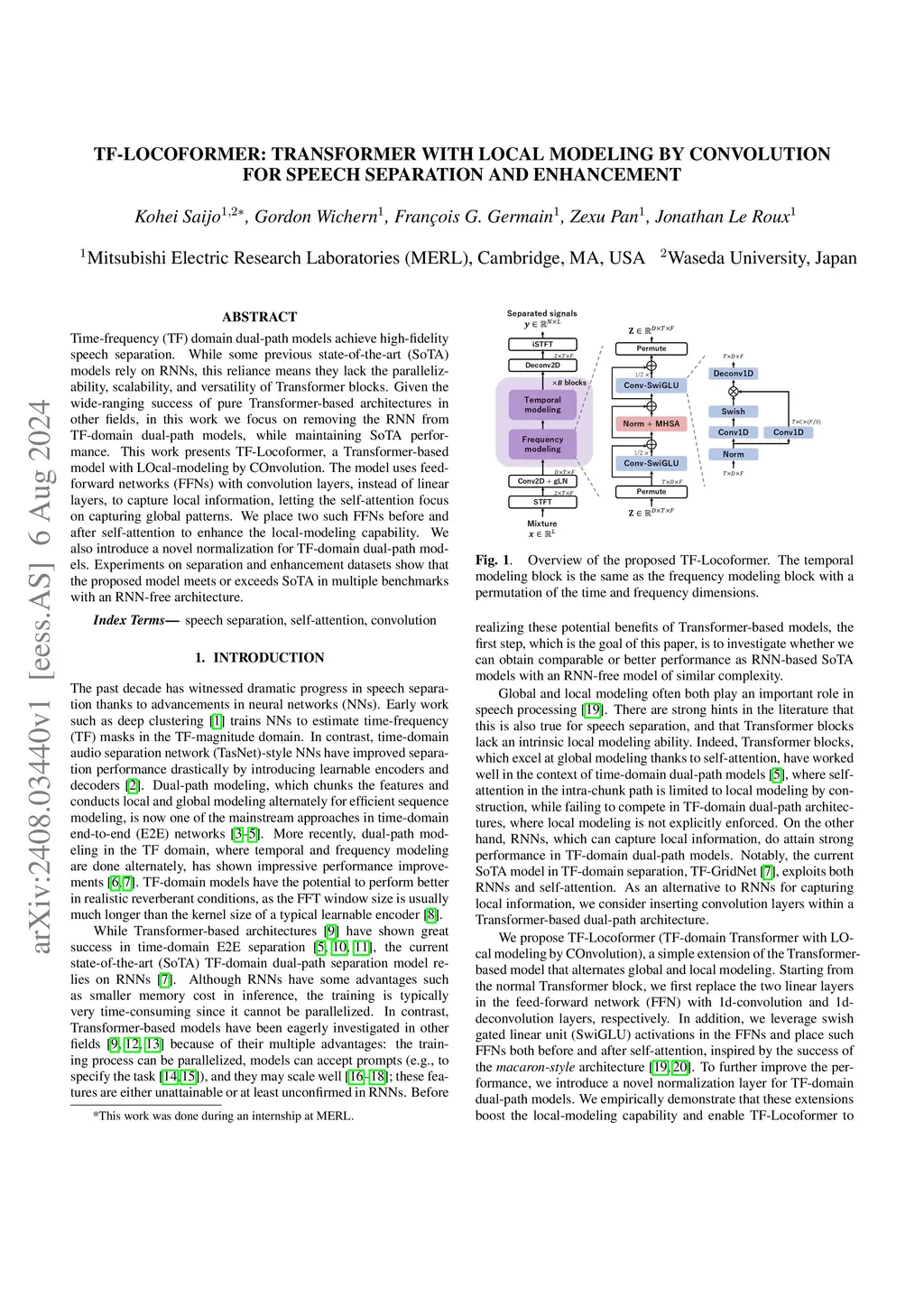 TF-Locoformer: Transformer with Local Modeling by Convolution for Speech