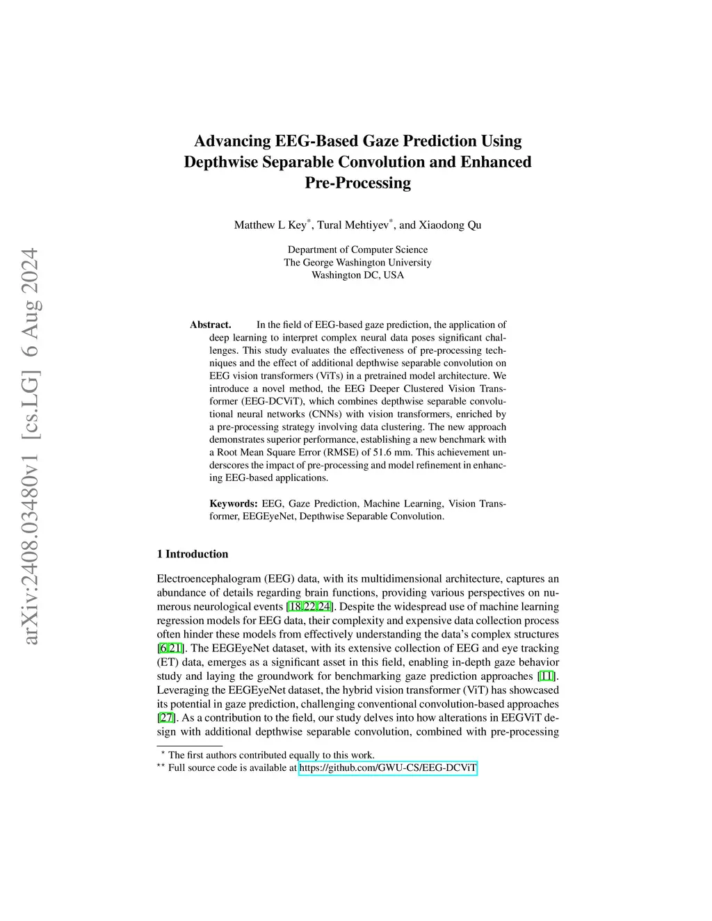 Advancing EEG-Based Gaze Prediction Using Depthwise Separable