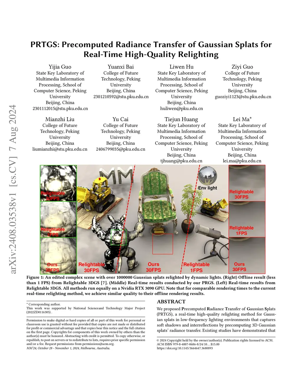 PRTGS: Precomputed Radiance Transfer of Gaussian Splats for Real-Time