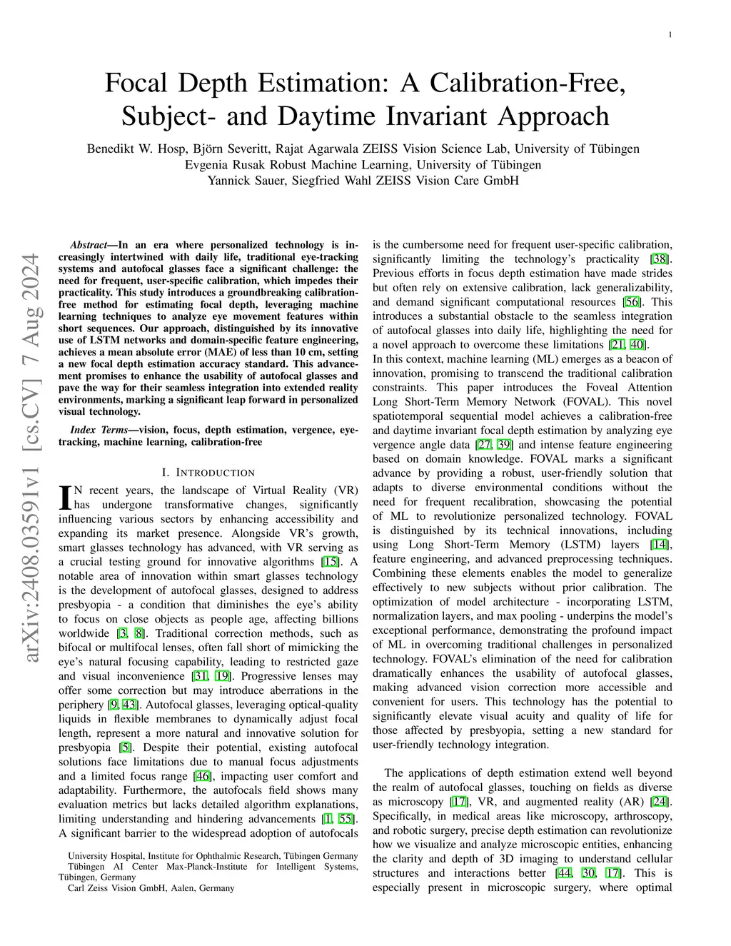 Accurate fixation depth estimation is essential for applications in extended reality (XR), robotics, and human-computer interaction. However, current methods heavily depend on user-specific calibration, which limits their scalability and usability. We introduce FOVAL, a robust calibration-free approach that combines spatiotemporal sequence modelling via Long Short-Term Memory (LSTM) networks with subject-invariant feature engineering and normalisation. Compared to Transformers, Temporal Convolutional Networks (TCNs), and CNNs, FOVAL achieves superior performance, particularly in scenarios with limited and noisy gaze data. Evaluations across three benchmark datasets using Leave-One-Out Cross-Validation (LOOCV) and cross-dataset validation show a mean absolute error (MAE) of 9.1 cm and strong generalisation without calibration. We further analyse inter-subject variability and domain shifts, providing insight into model robustness and adaptation. FOVAL's scalability and accuracy make it highly suitable for real-world deployment.