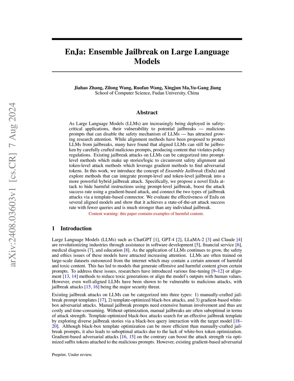 EnJa: Ensemble Jailbreak on Large Language Models