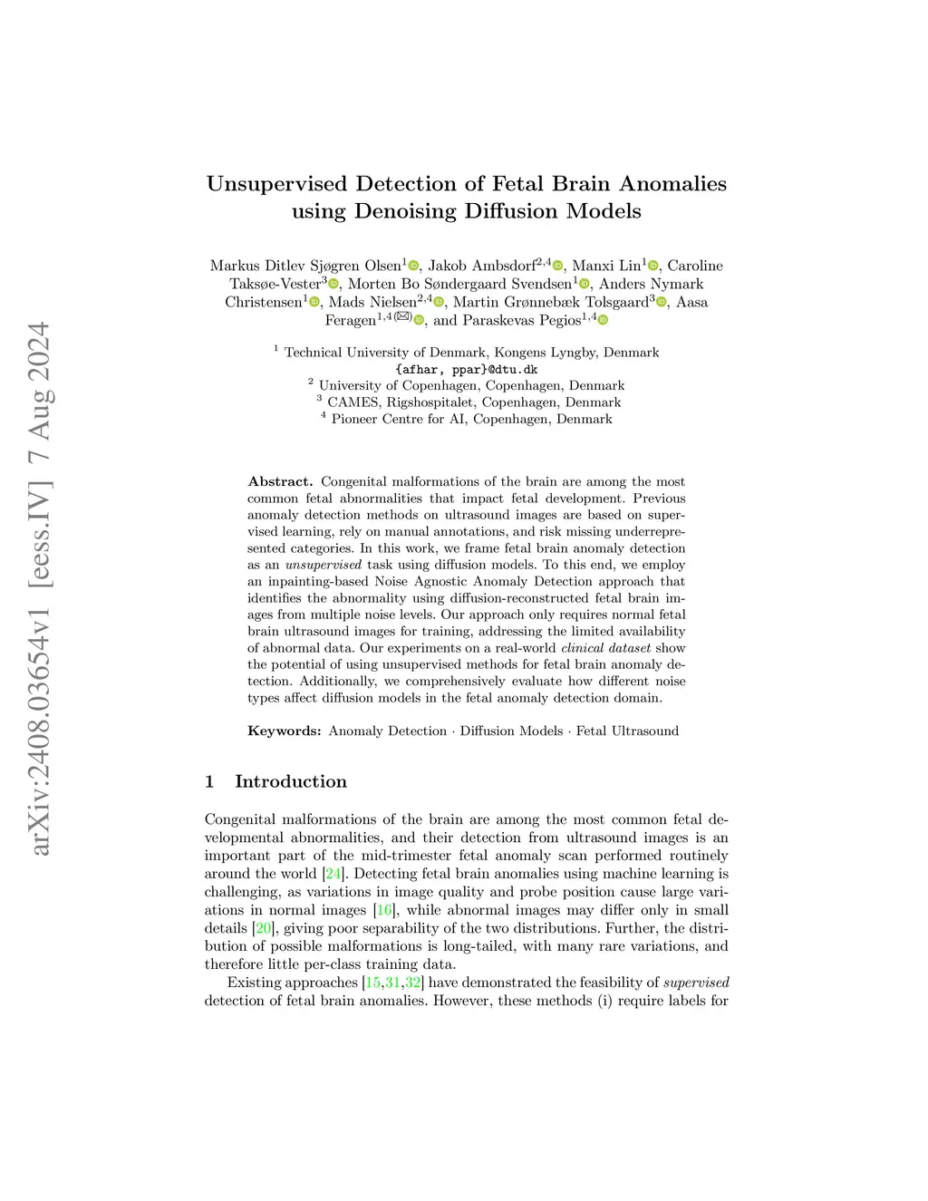 Unsupervised Detection of Fetal Brain Anomalies using Denoising