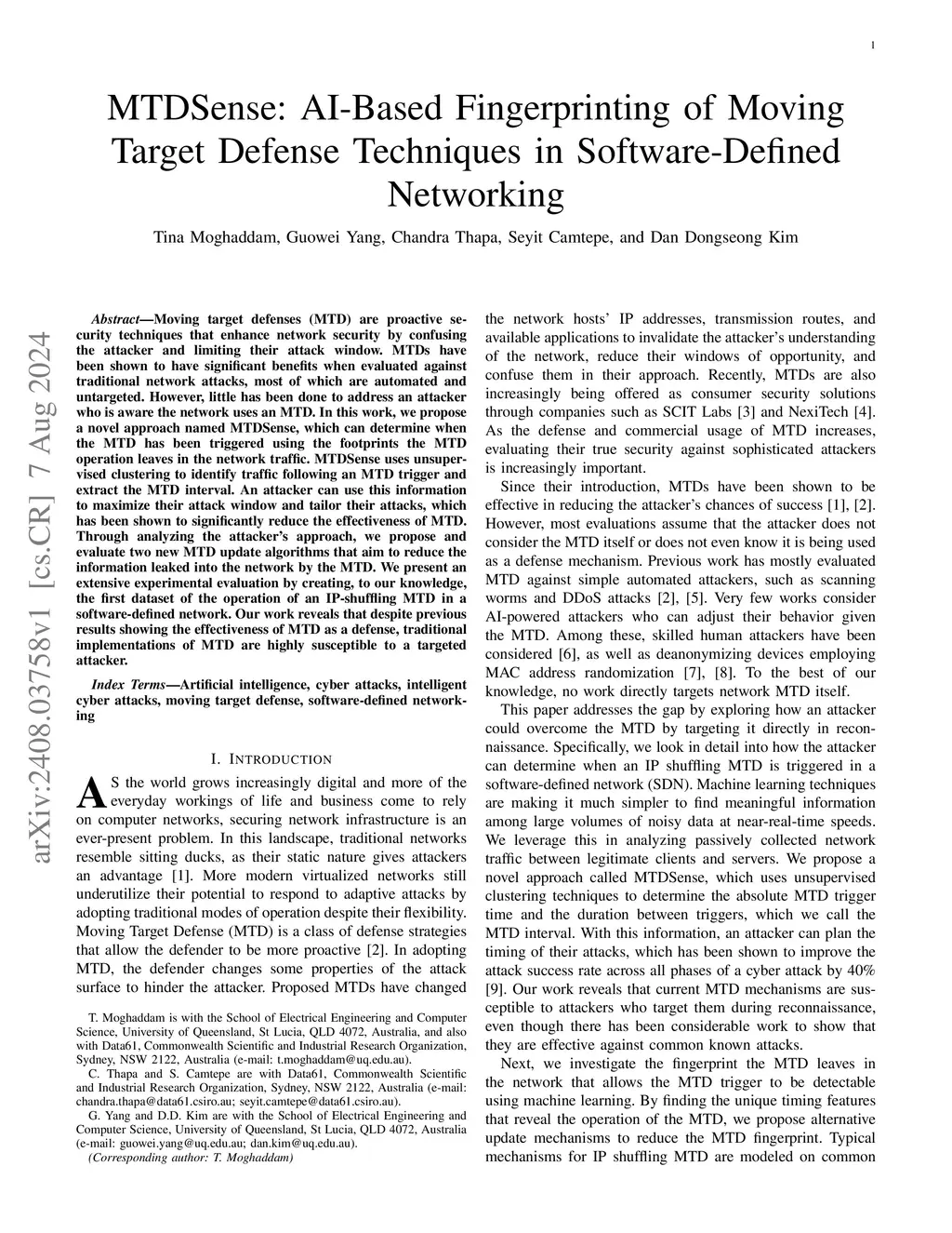 MTDSense: AI-Based Fingerprinting of Moving Target Defense Techniques in