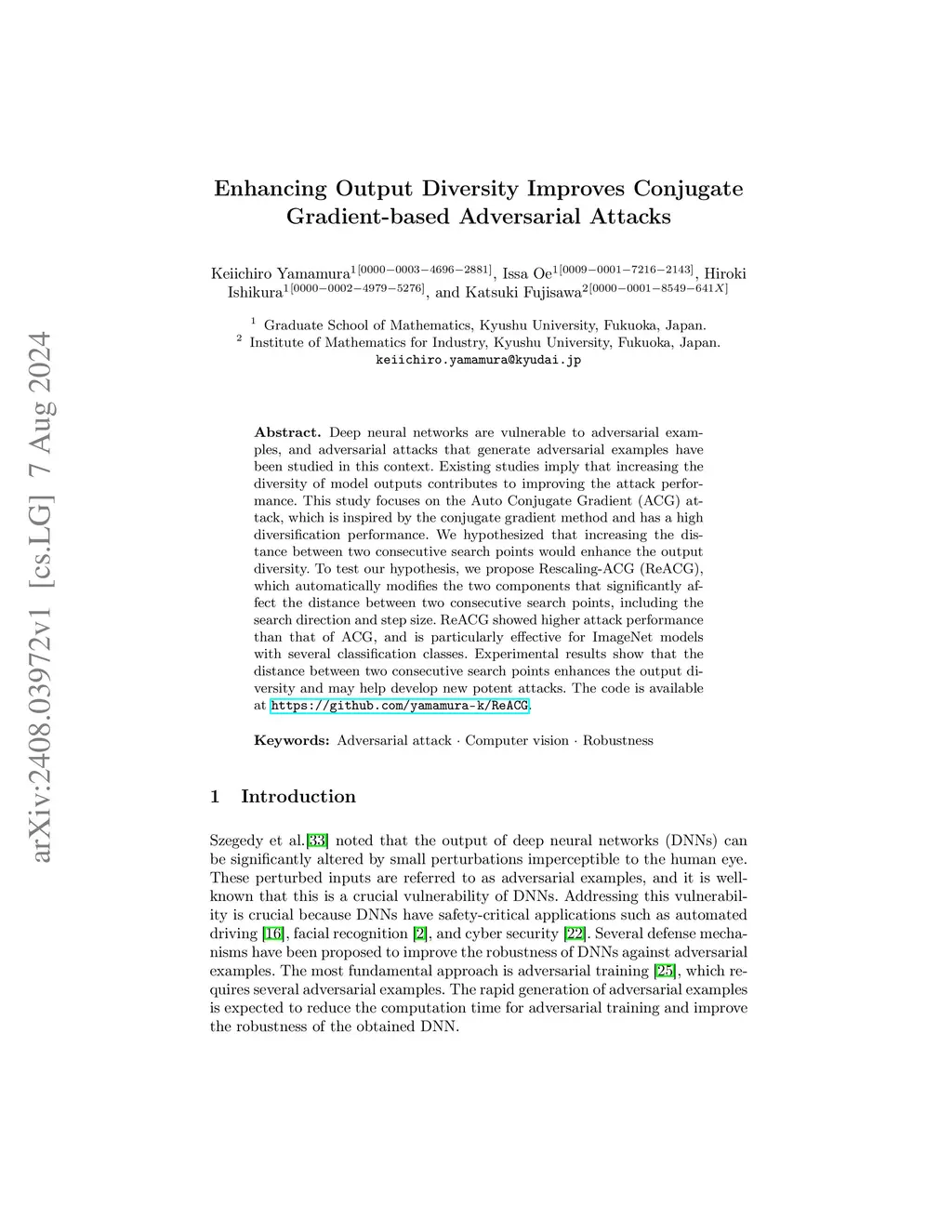 Enhancing Output Diversity Improves Conjugate Gradient-based Adversarial