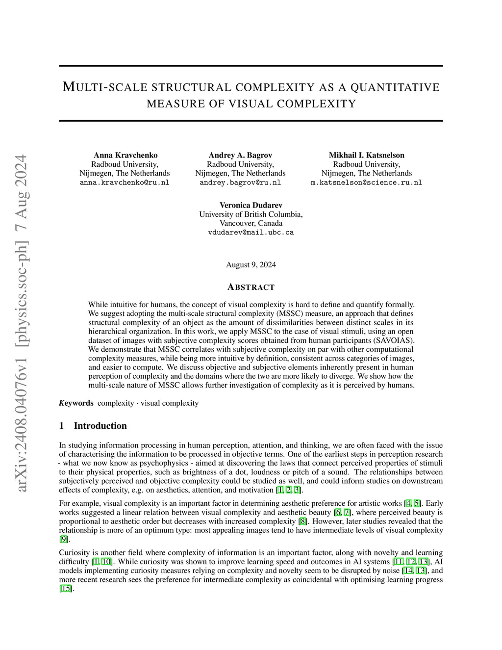 Multi-scale structural complexity as a quantitative measure of visual