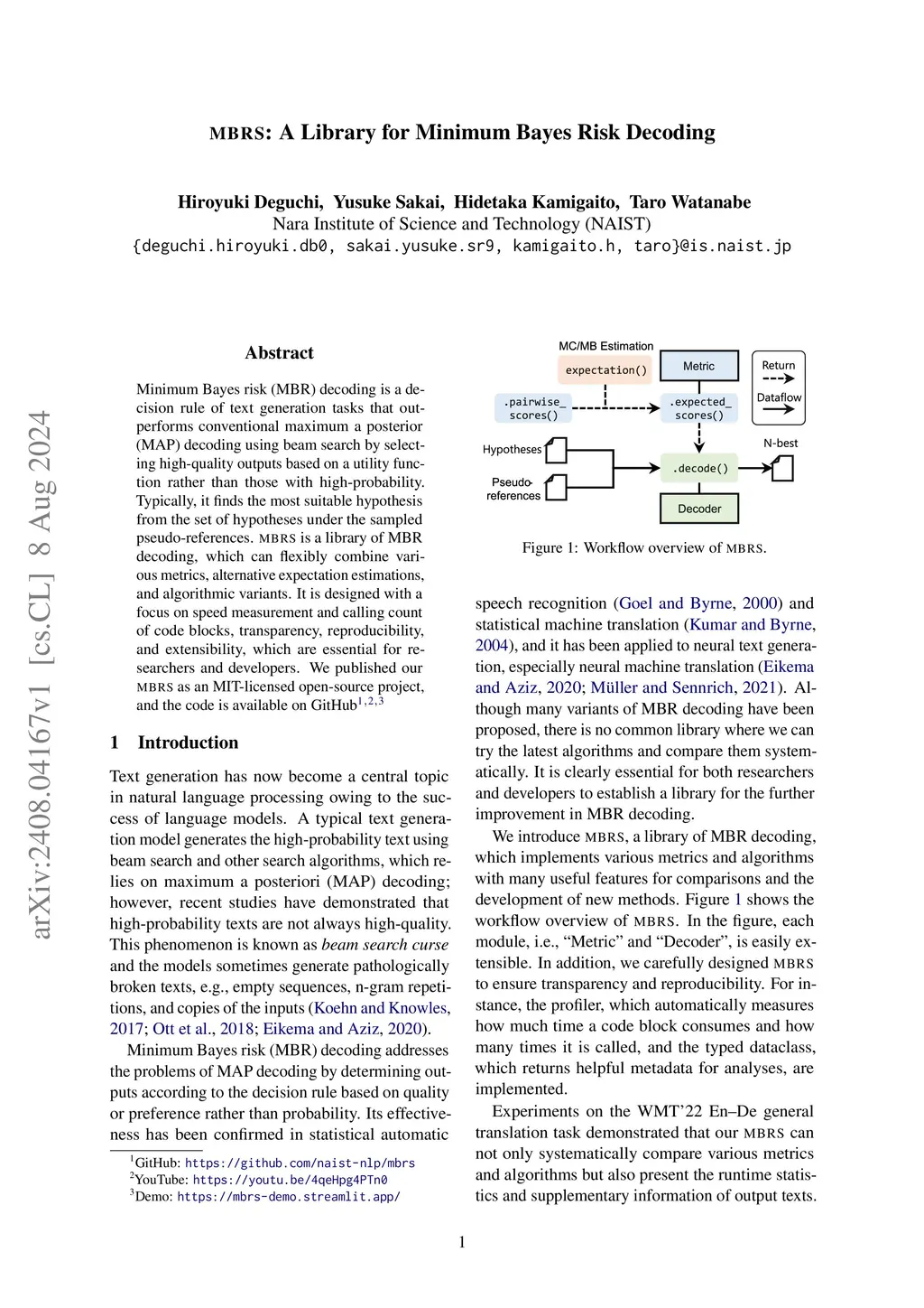 mbrs: A Library for Minimum Bayes Risk Decoding