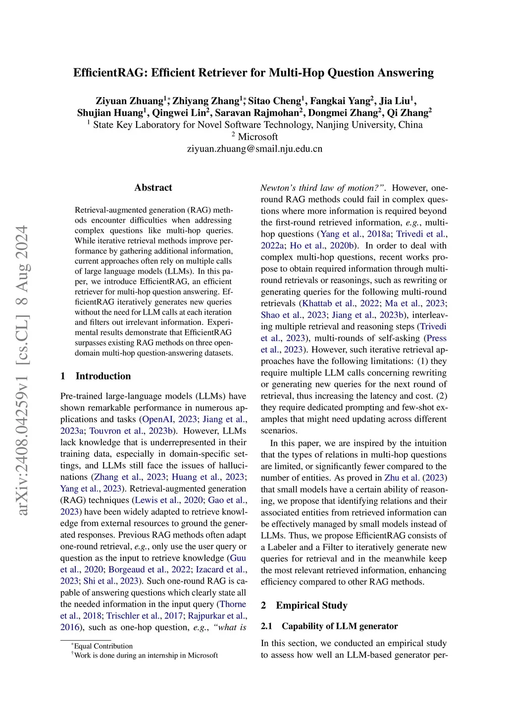 EfficientRAG: Efficient Retriever for Multi-Hop Question Answering