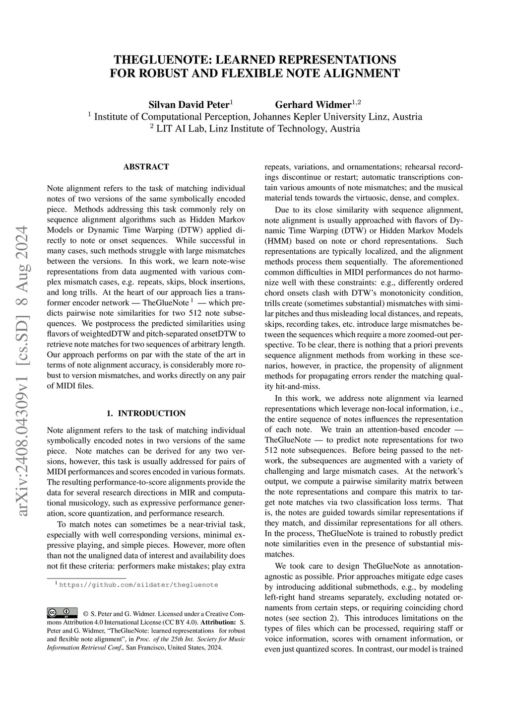 TheGlueNote: Learned Representations for Robust and Flexible Note