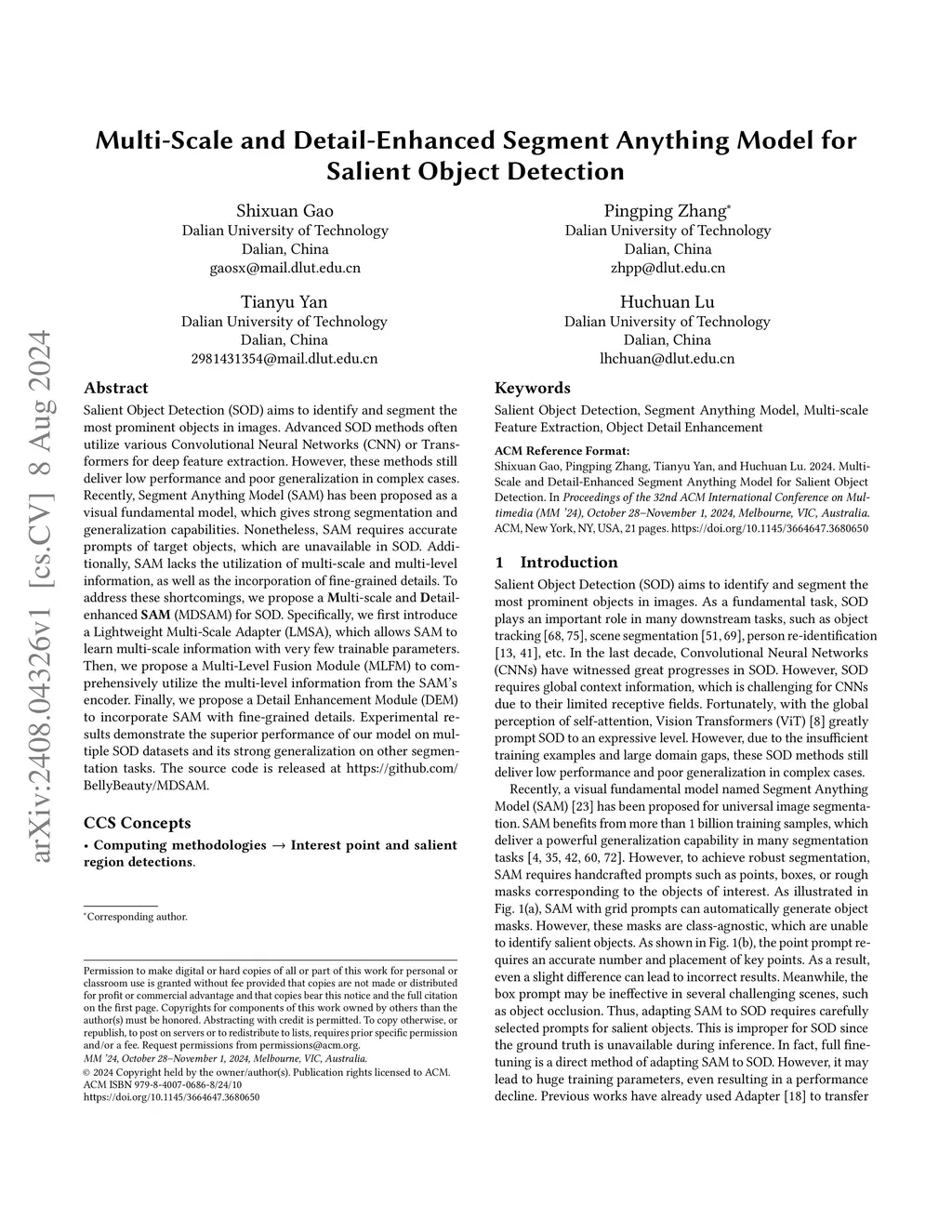 Multi-Scale and Detail-Enhanced Segment Anything Model for Salient