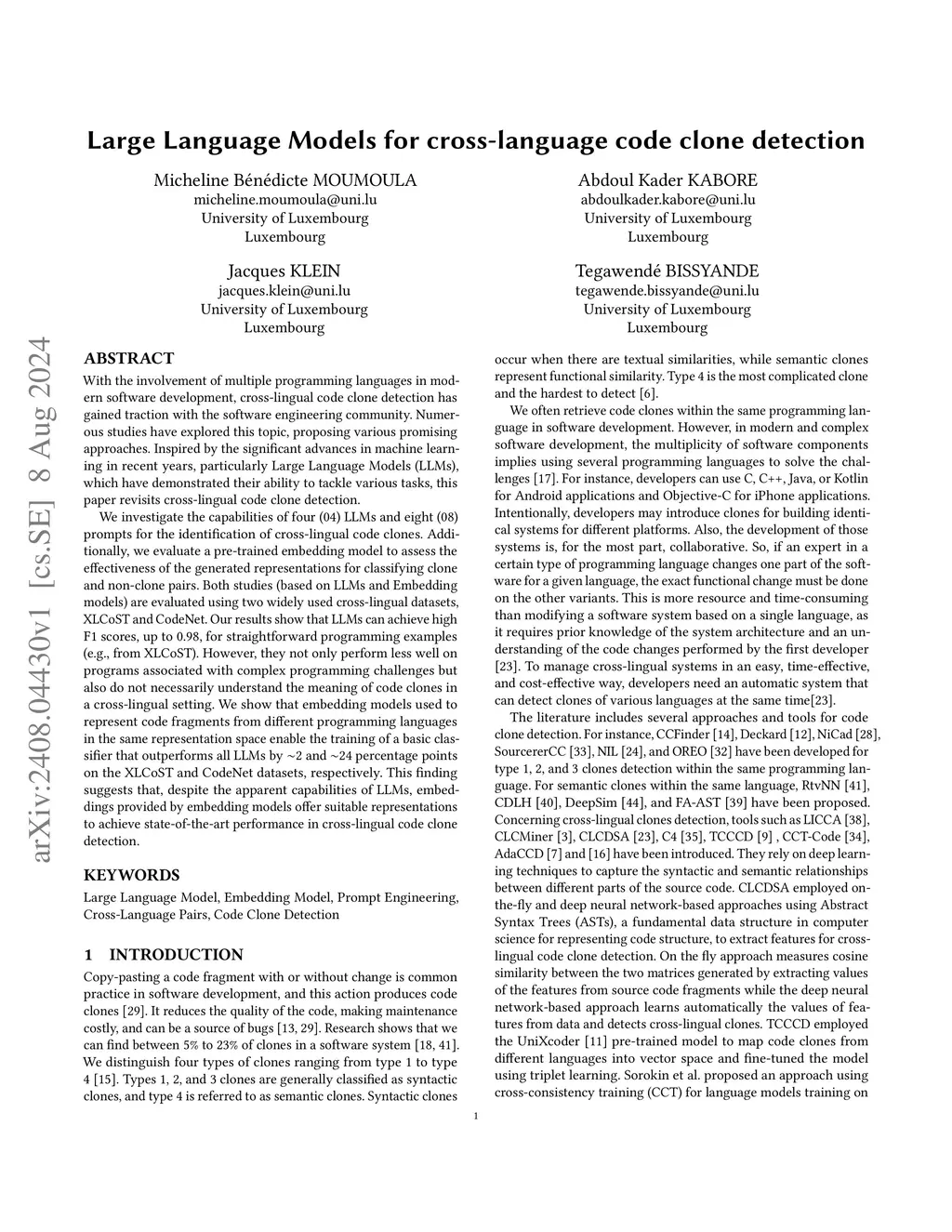 With the involvement of multiple programming languages in modern software development, cross-lingual code clone detection has gained traction within the software engineering community. Numerous studies have explored this topic, proposing various promising approaches. Inspired by the significant advances in machine learning in recent years, particularly Large Language Models (LLMs), which have demonstrated their ability to tackle various tasks, this paper revisits cross-lingual code clone detection. We evaluate the performance of five (05) LLMs and eight prompts (08) for the identification of cross-lingual code clones. Additionally, we compare these results against two baseline methods. Finally, we evaluate a pre-trained embedding model to assess the effectiveness of the generated representations for classifying clone and non-clone pairs. The studies involving LLMs and Embedding models are evaluated using two widely used cross-lingual datasets, XLCoST and CodeNet. Our results show that LLMs can achieve high F1 scores, up to 0.99, for straightforward programming examples. However, they not only perform less well on programs associated with complex programming challenges but also do not necessarily understand the meaning of "code clones" in a cross-lingual setting. We show that embedding models used to represent code fragments from different programming languages in the same representation space enable the training of a basic classifier that outperforms all LLMs by ~1 and ~20 percentage points on the XLCoST and CodeNet datasets, respectively. This finding suggests that, despite the apparent capabilities of LLMs, embeddings provided by embedding models offer suitable representations to achieve state-of-the-art performance in cross-lingual code clone detection.