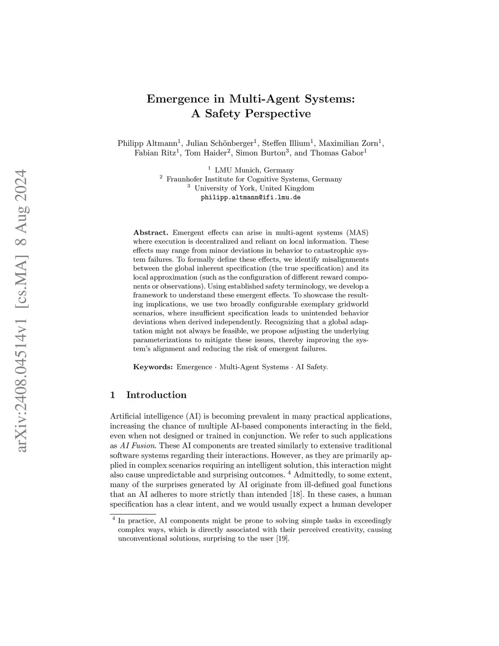 Emergent effects can arise in multi-agent systems (MAS) where execution is decentralized and reliant on local information. These effects may range from minor deviations in behavior to catastrophic system failures. To formally define these effects, we identify misalignments between the global inherent specification (the true specification) and its local approximation (such as the configuration of different reward components or observations). Using established safety terminology, we develop a framework to understand these emergent effects. To showcase the resulting implications, we use two broadly configurable exemplary gridworld scenarios, where insufficient specification leads to unintended behavior deviations when derived independently. Recognizing that a global adaptation might not always be feasible, we propose adjusting the underlying parameterizations to mitigate these issues, thereby improving the system's alignment and reducing the risk of emergent failures.